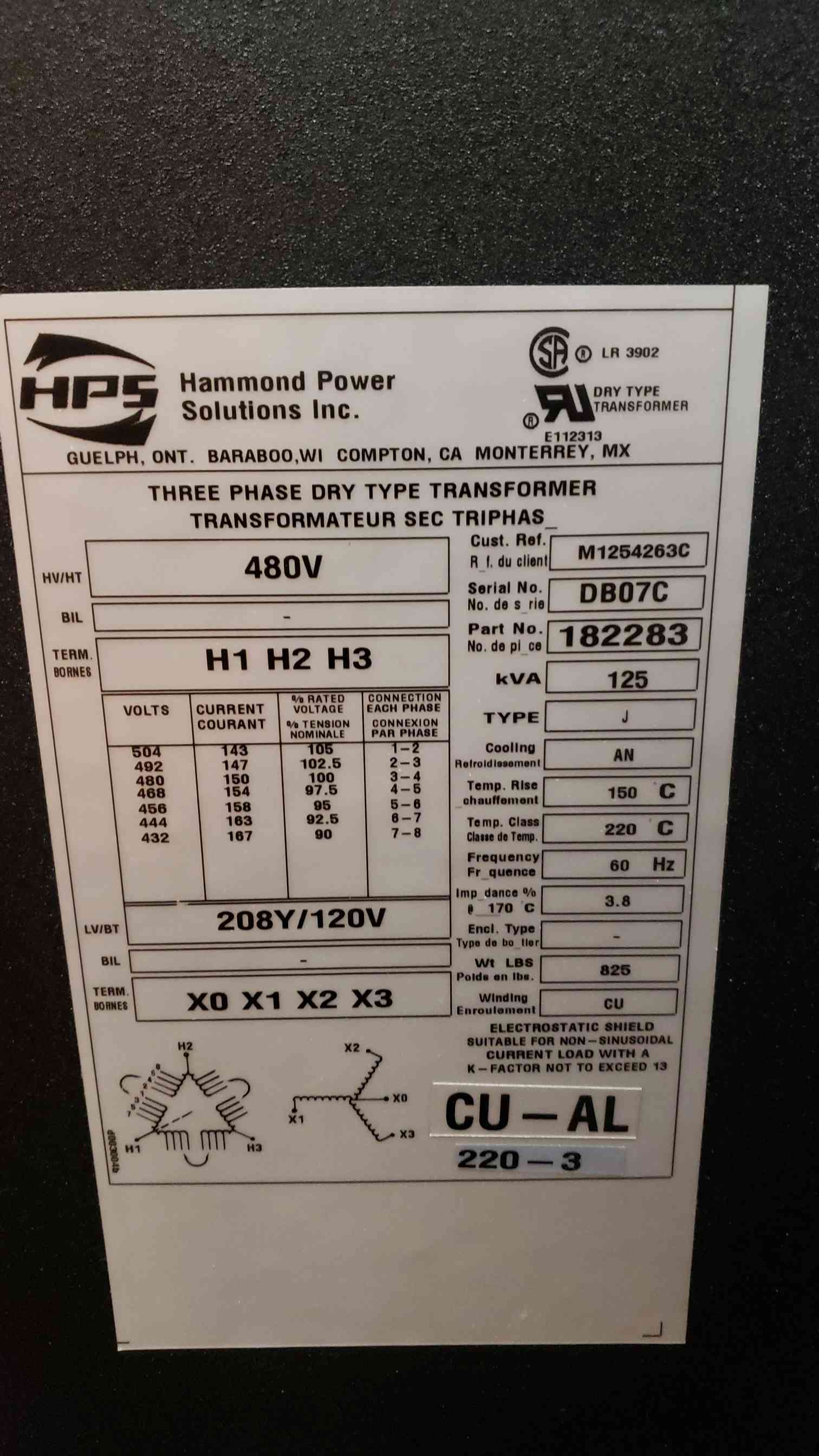 Eaton 125KVA PDU 480v x 208/120v Step Down Distribution BCM Branch Circuit Monitoring(103473)