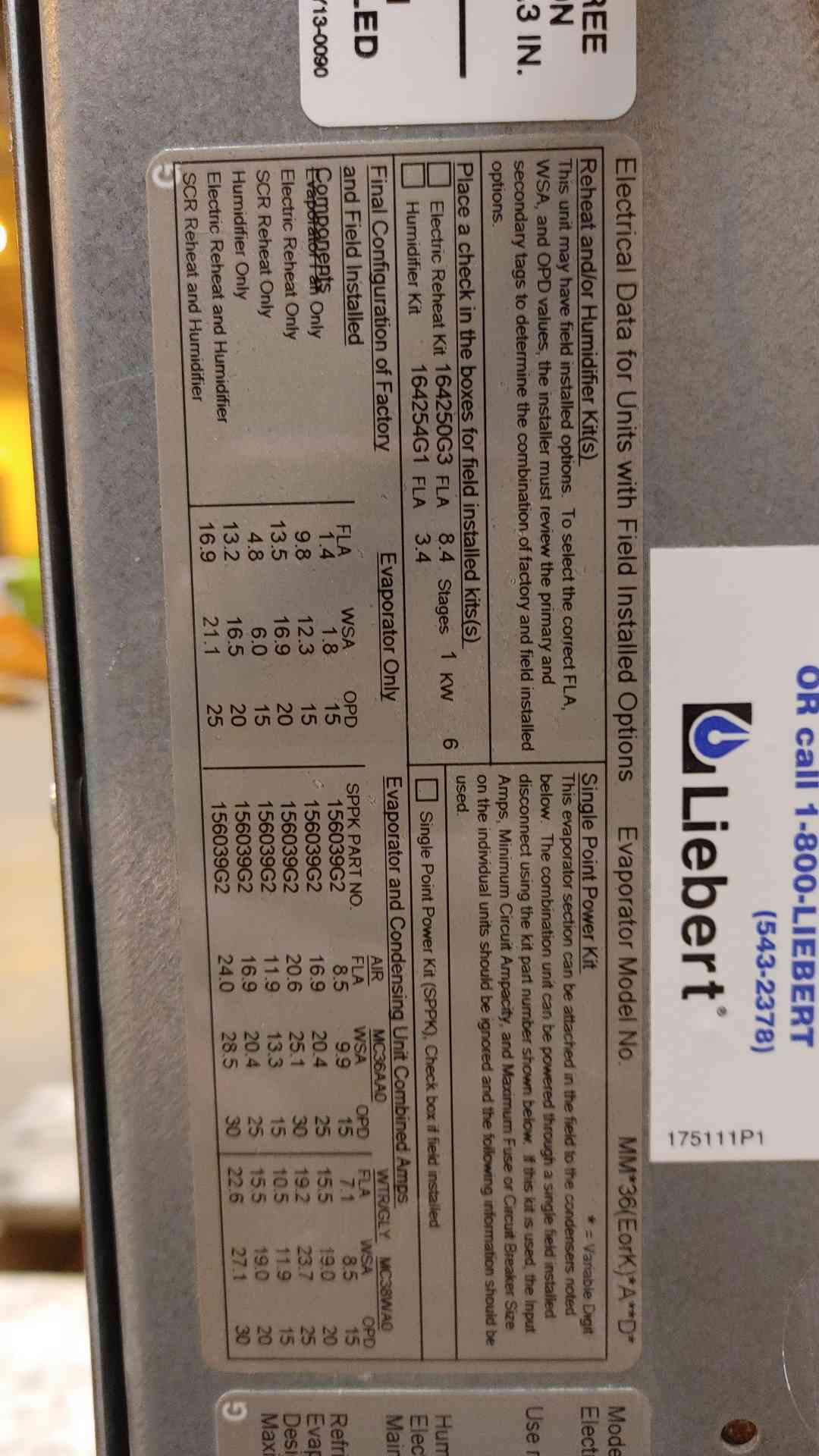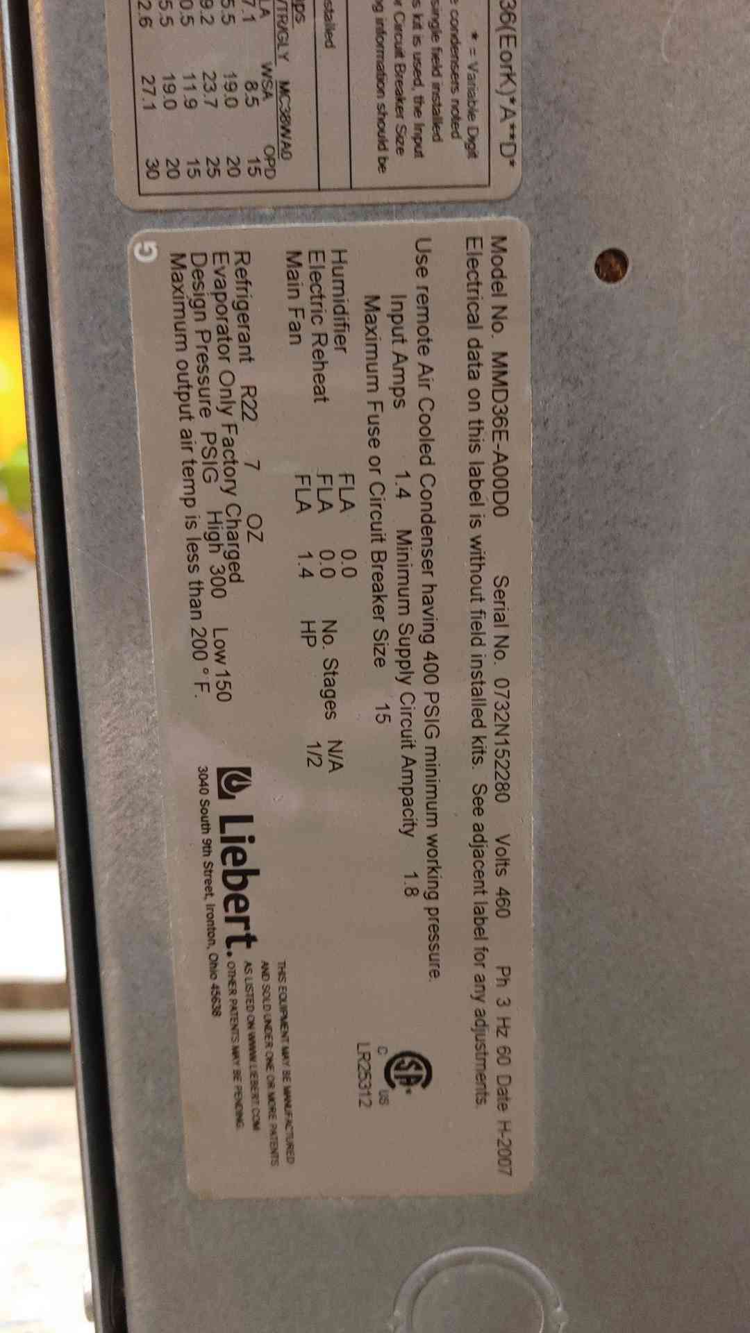 Liebert 3 Ton MiniMate 460V 3PH MMD36E-A00D0 Ceiling Mount AC(106357)