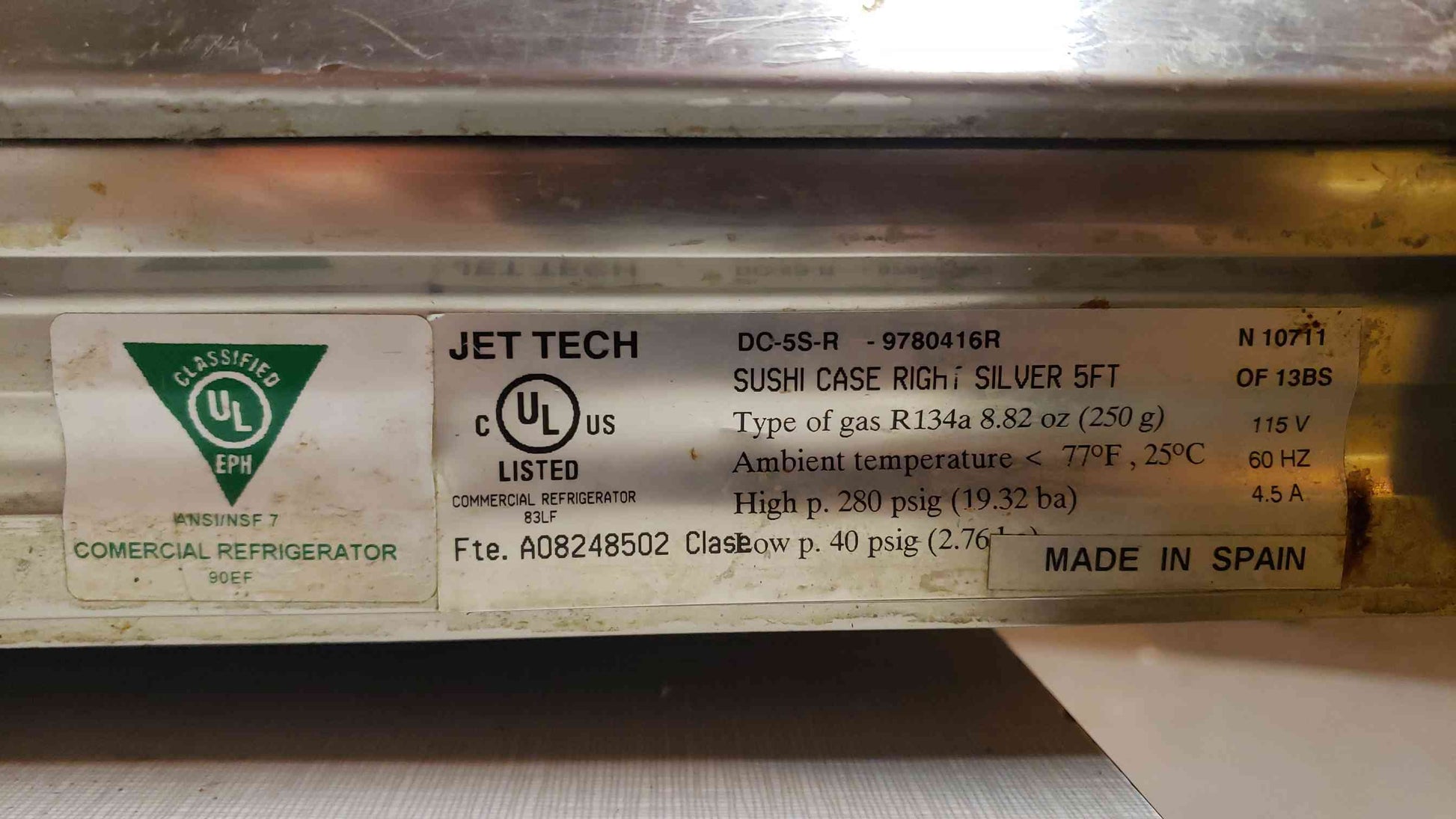 Jet Tech 5' Right Silver Sushi Case DO-5S-R Refrigerated R-134A (SKU: 106923)