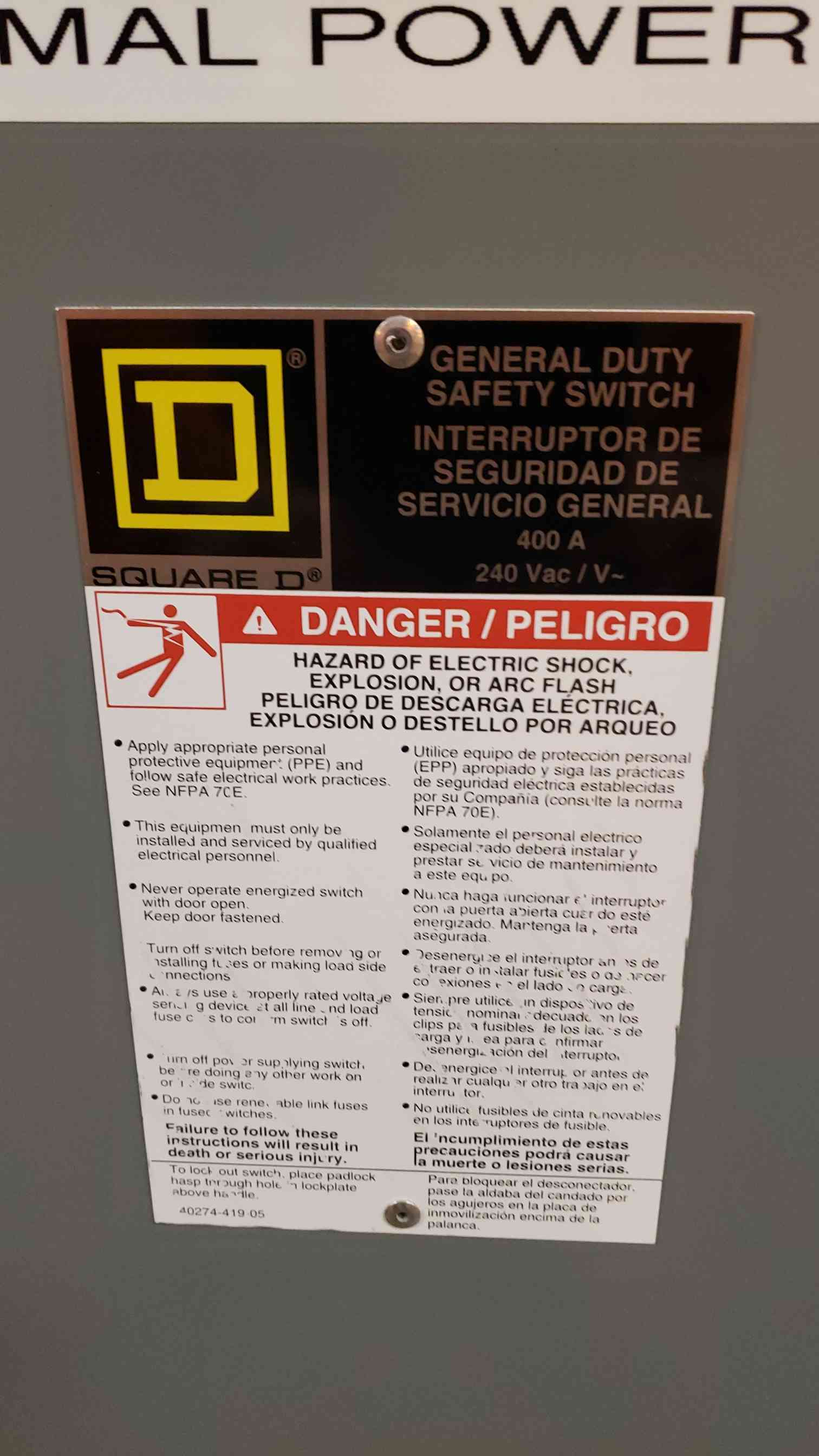 Square D 400A Fused Safety Switch D325N (SKU: 106927)