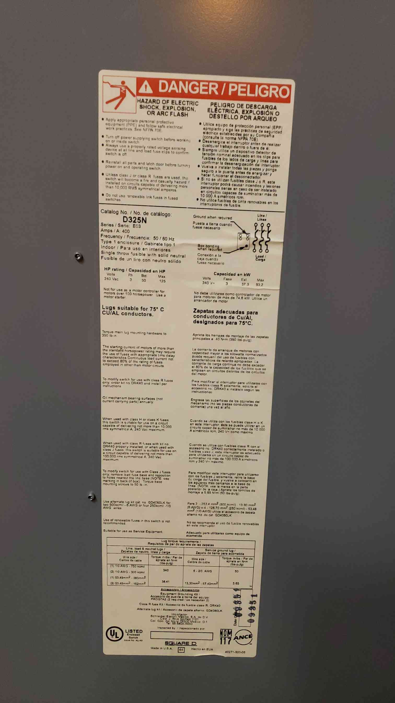 The Square D 400A Fused Safety Switch D325N ensures safety and reliability for your electrical setups. With a robust design, it handles heavy loads with ease.