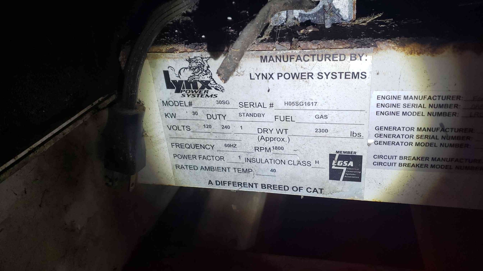 30KW Lynx 30SG 120/240V 1&3PH Nat Gas LP 325 Hrs. TESTED (SKU: 107723)