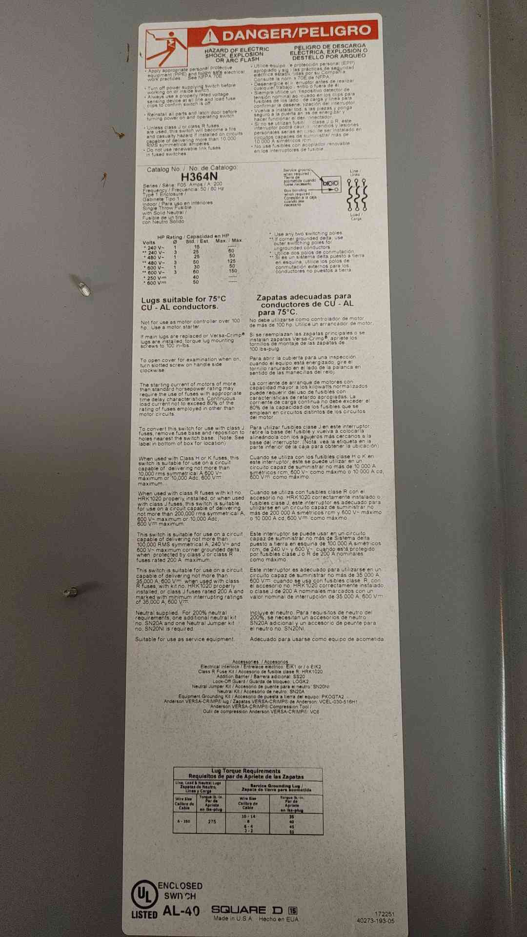 The Square D 200A 600VAC Heavy Duty Safety Switch ensures reliable power control. Built tough for heavy-duty use, its perfect for industrial settings.