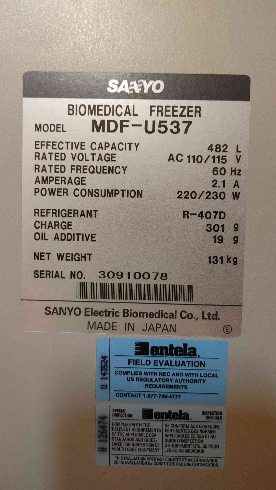 Sanyo Biomedical Freezer MDF-U537 Refrigerant (108698)