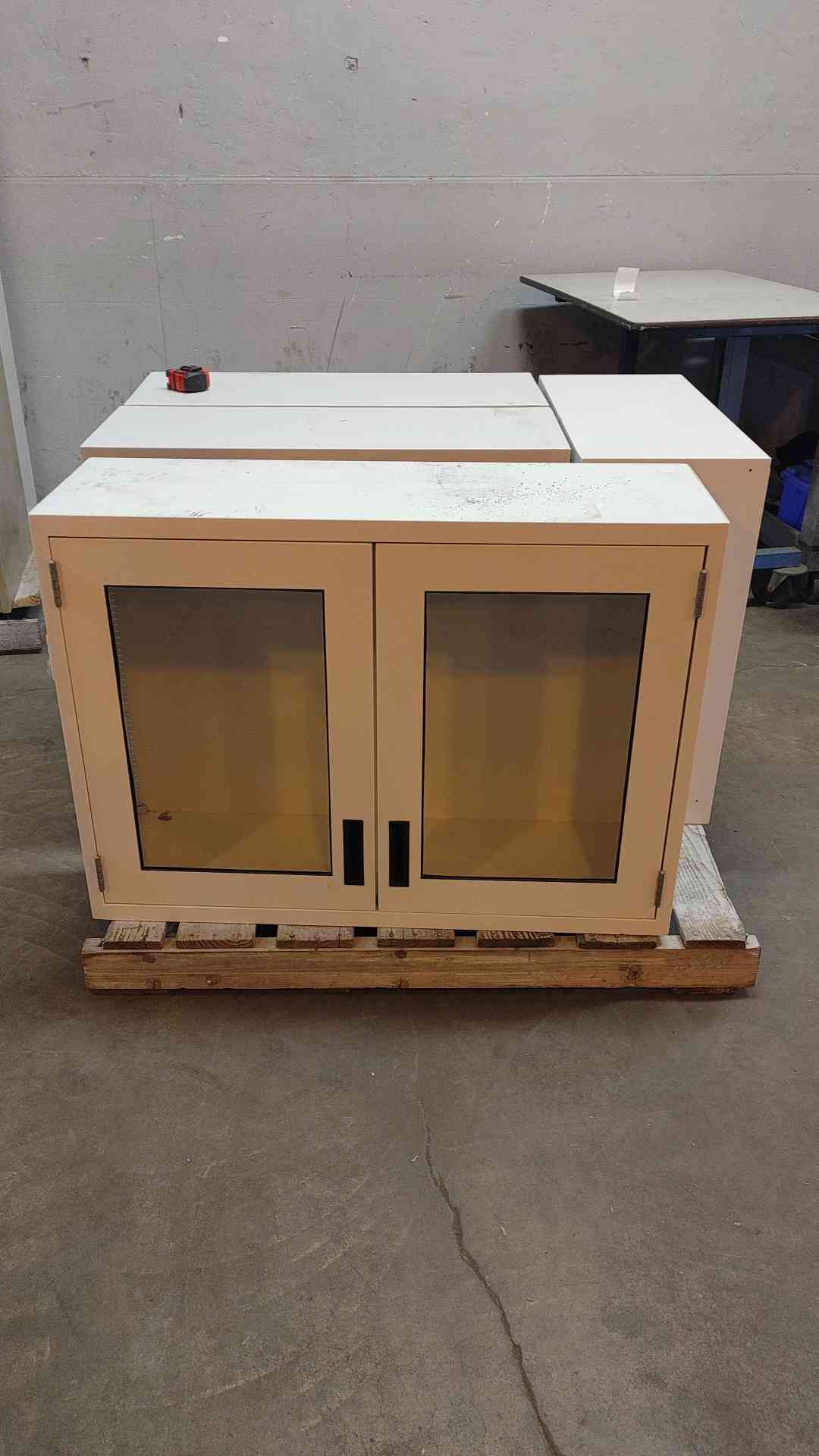 This 41-inch recessed overhead casework features sleek glass swinging doors, perfect for modernizing your space.