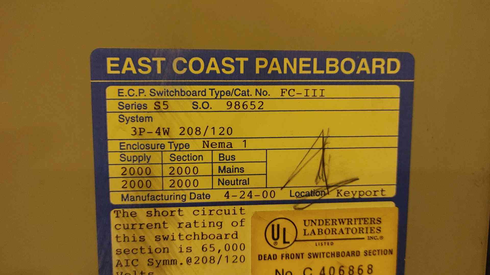 2000A Switchboard Cutler Hammer RGH-C RGH320033EC 208/120V S5 Series FC-III 2000A & 500A Breaker (108898)