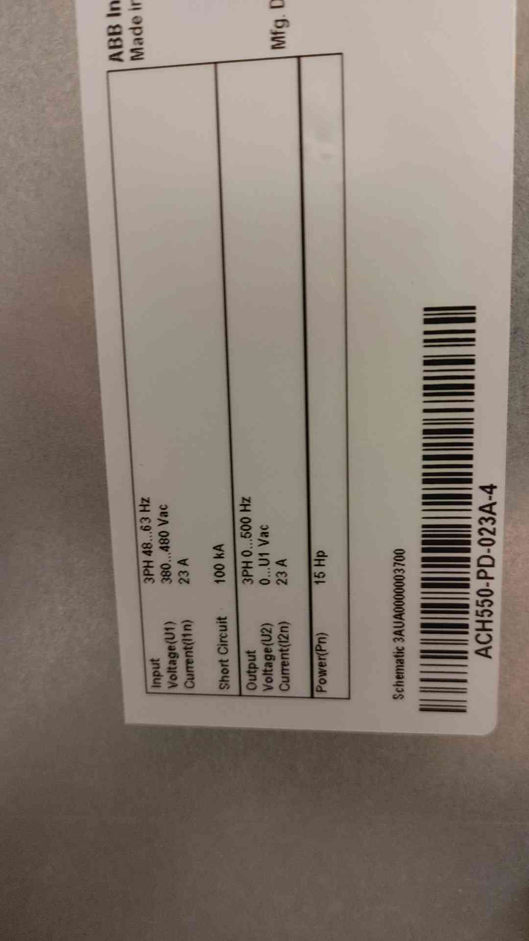 15HP ABB Industrial VFD ACH550-PD-023A-4 Control Panel 480V 23A 3Ph (108948)