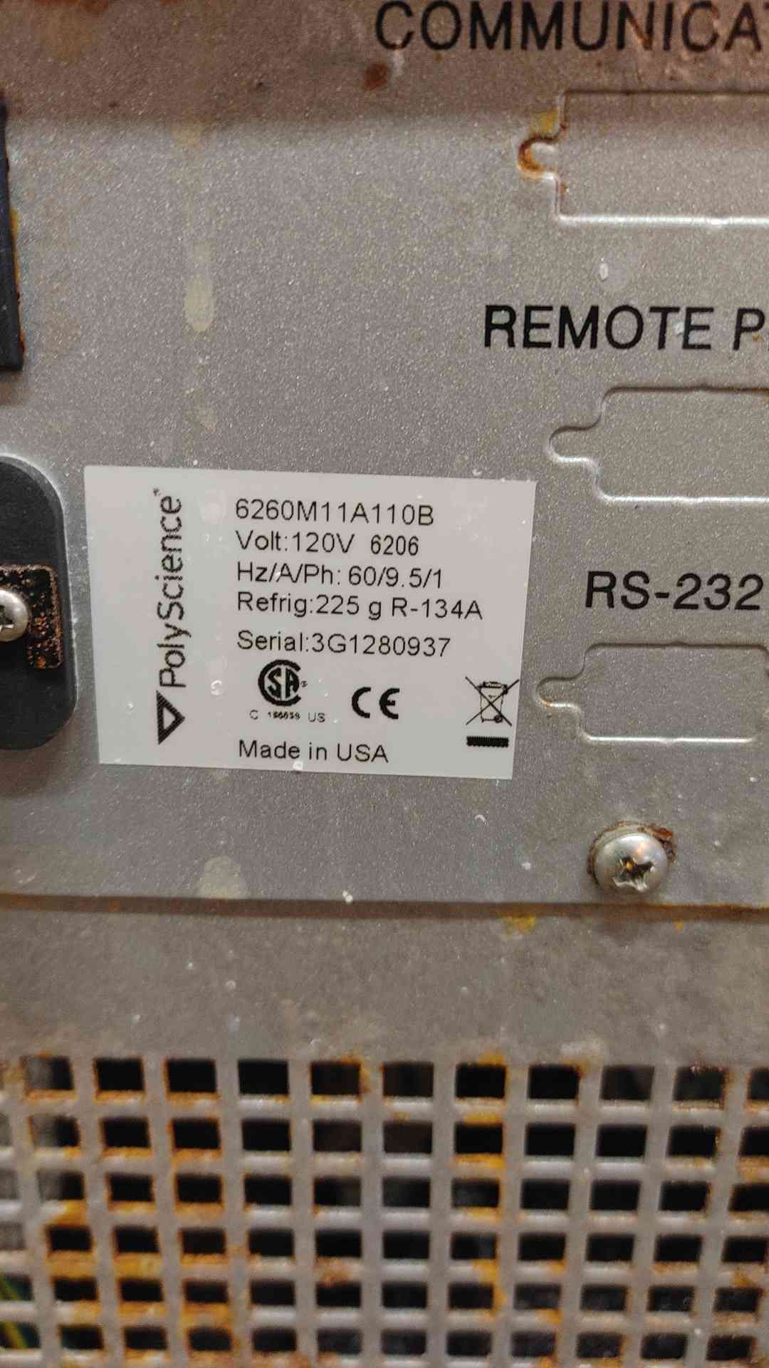 PolyScience 6260M11A110B recirculating chiller designed for laboratory or industrial applications requiring precise temperature control, likely for cooling external equipment or processes.