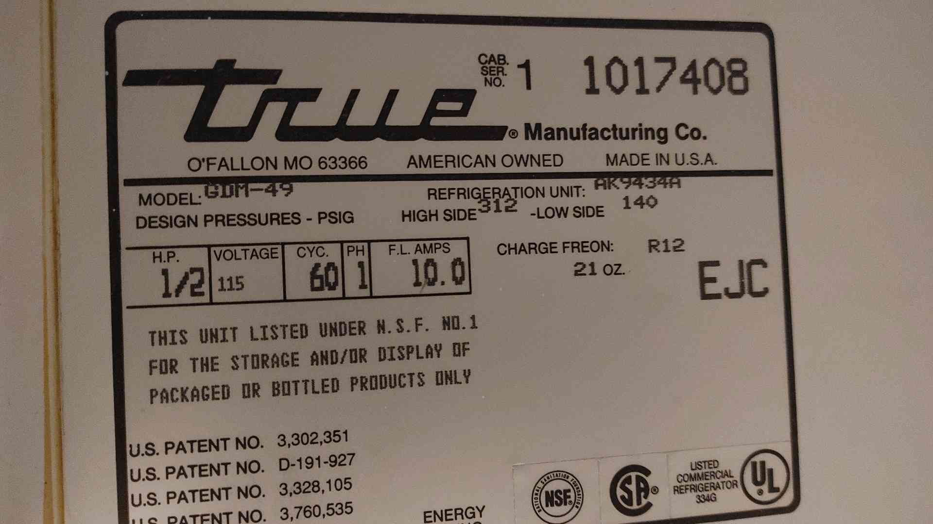 Serial Number (CAB. SER. NO.): 1 1017408