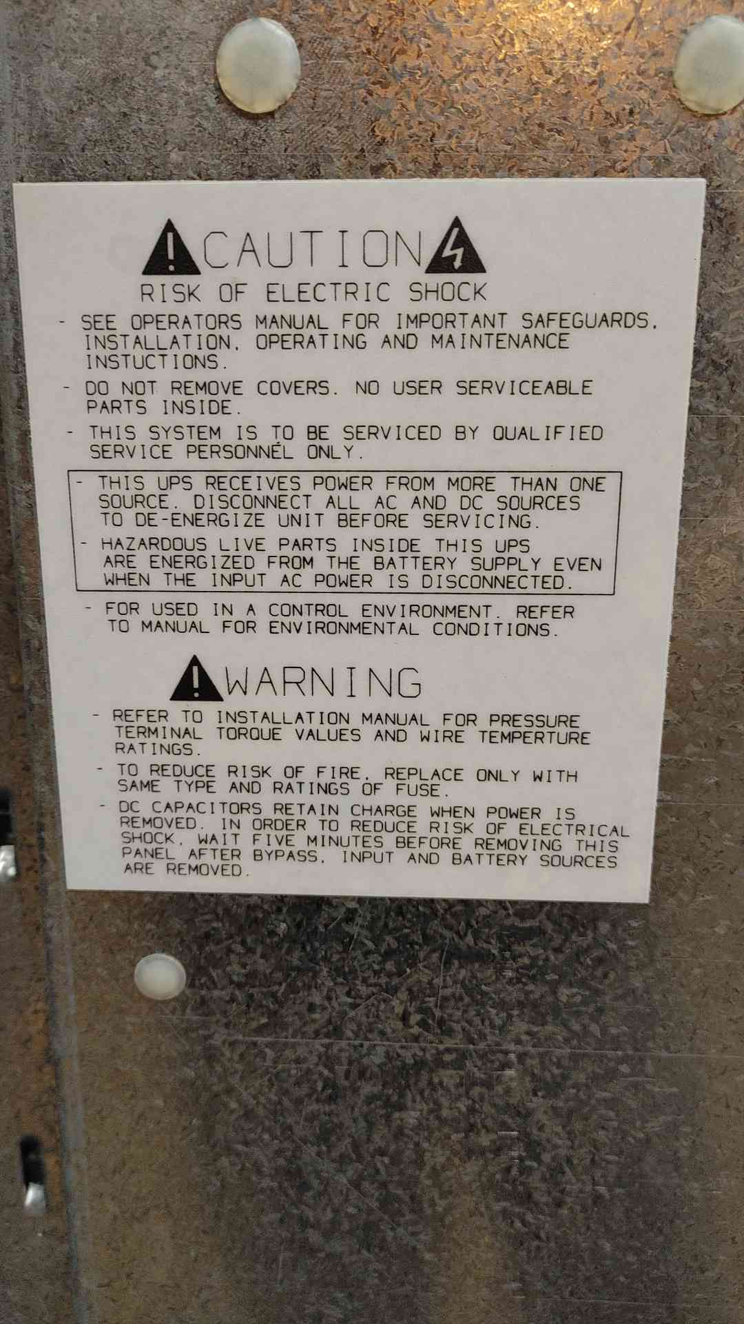 Eaton Powerware 9390-80 UPS 50KVA 208V (109305)