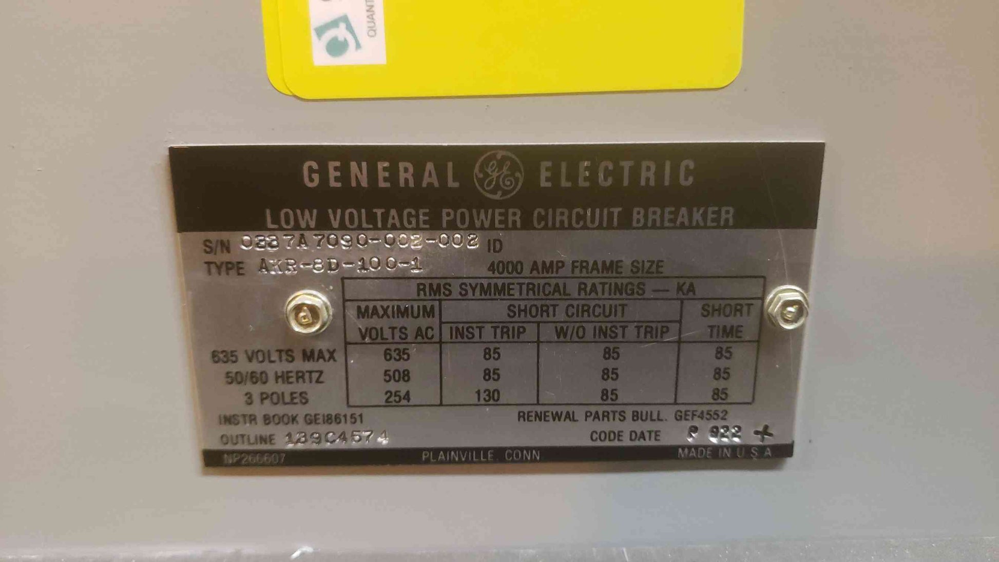 GE 4000A 635V Max Low Voltage Power Circuit Breaker AKR-8D-100-1 (SKU: 109425)
