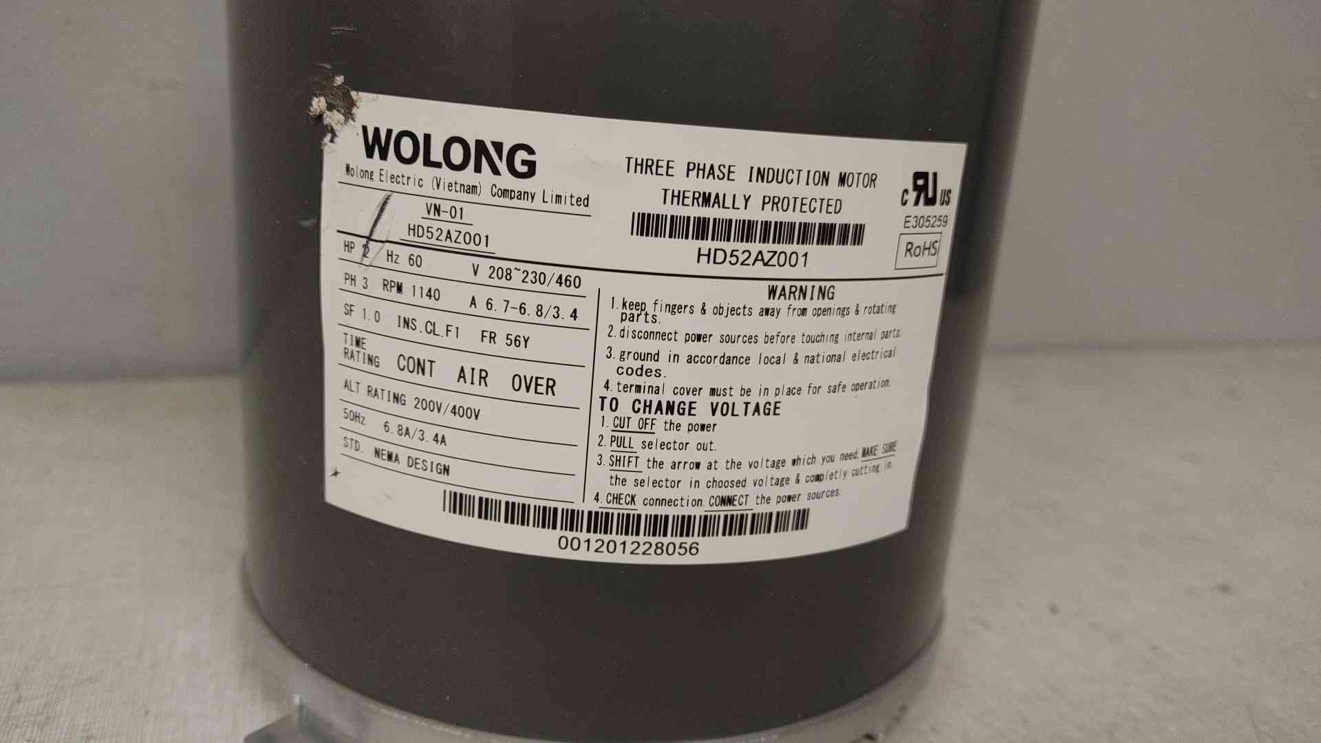 Wolong Electric 3 Ph Induction Motor HD52AZ001 2 HP 60 Hz 208/460 V (109458)