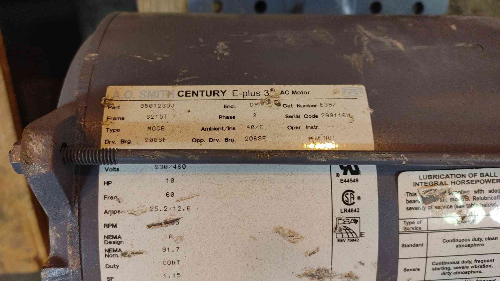 This is an A.O. Smith Century E-Plus 3 AC motor. Based on the label, here are its specifications: