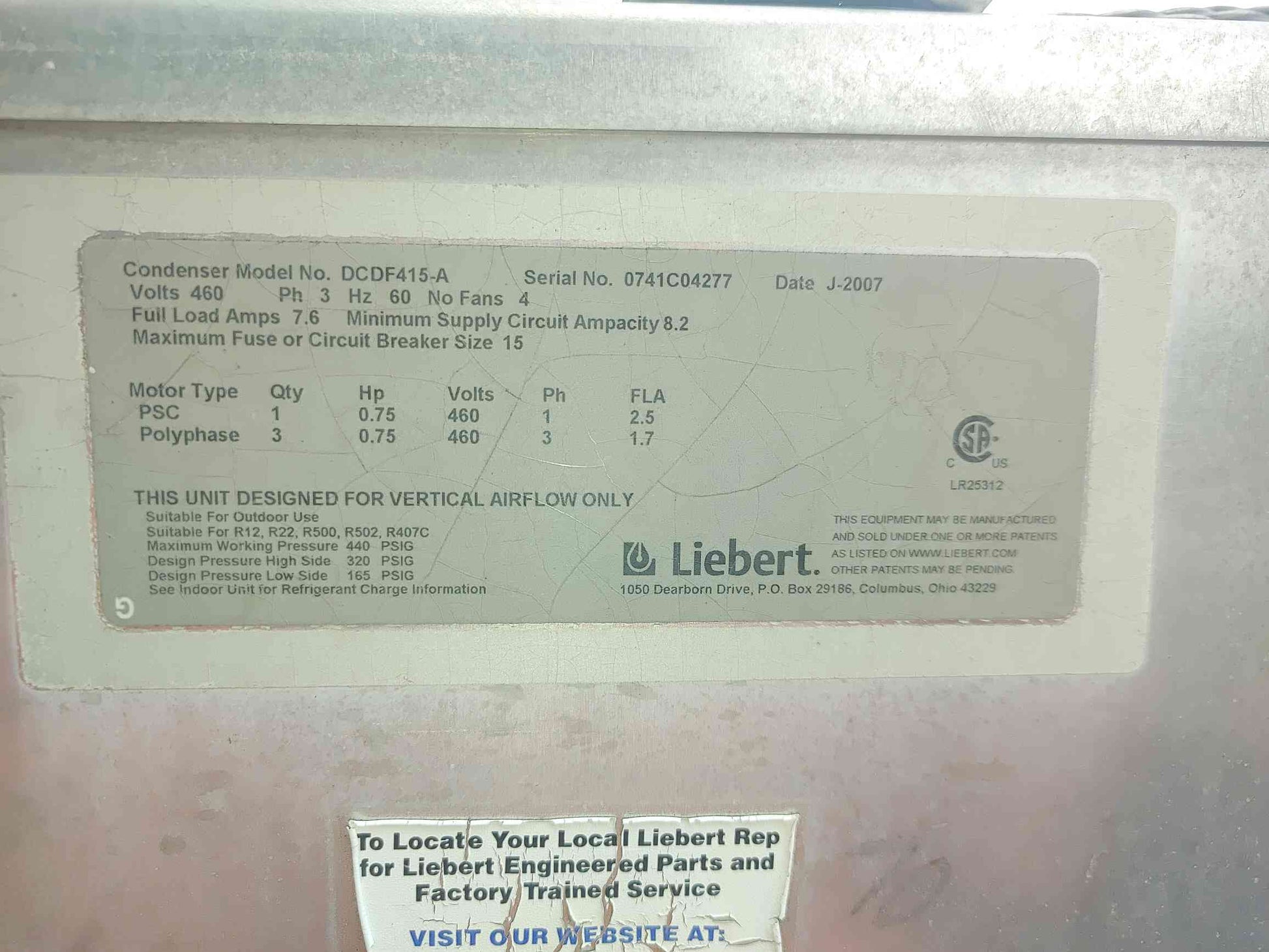 Liebert 4 Fan Condenser DCDF415-A 460V (109547)
