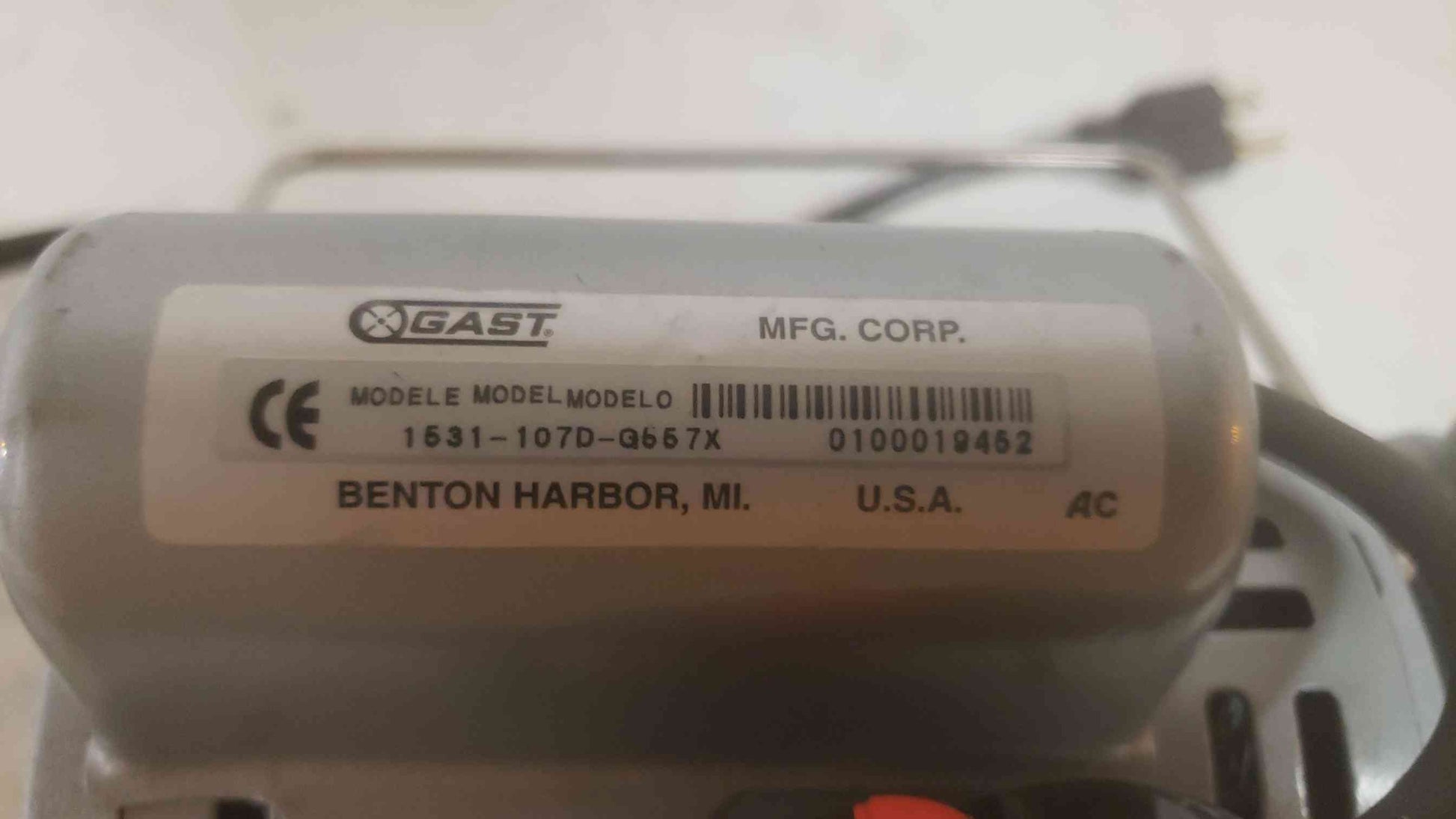 Gast 1531-107D-Q667X 1/10 HP Oilless Air Compressor with Reliance Electric Motor