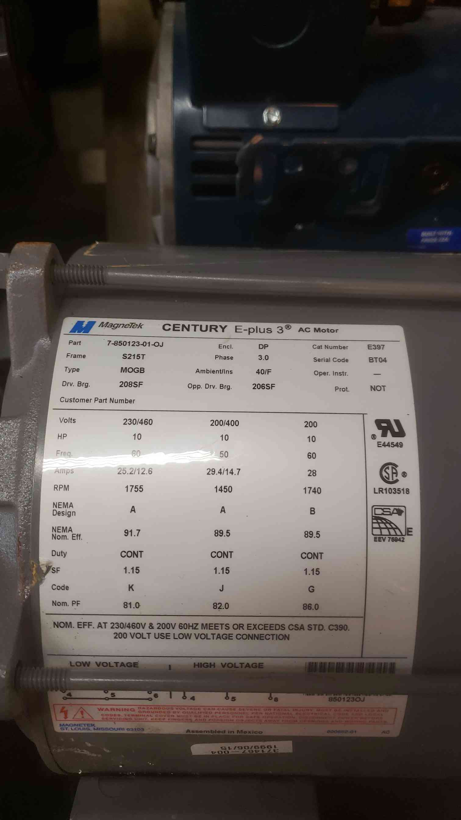 MagneTek E-plus 3 10HP 3PH 230/460V Motor 7-850123-01-OJ (SKU: 109630)