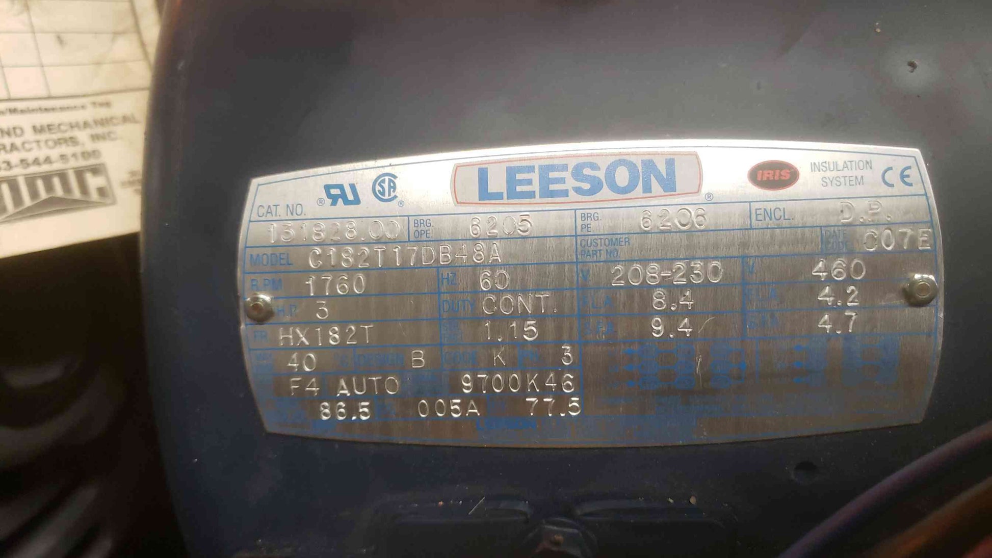 LEESON 3HP 460 208-230 Motor C182T17DB48A (SKU: 109631)