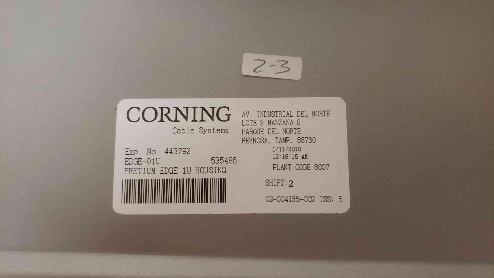 Manufacturing Date: January 11, 2010
