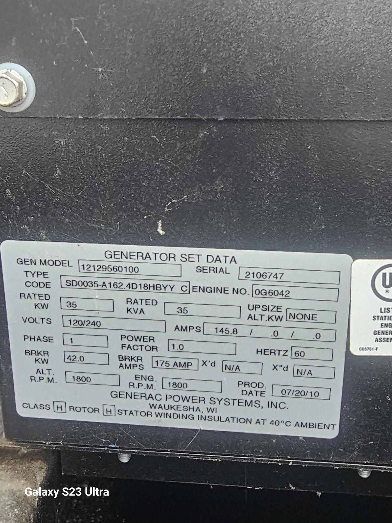 AS-IS 35KW Generac John Deere 4024 Diesel Generator 1PH 3Hrs. 2010 (SKU: 109681)