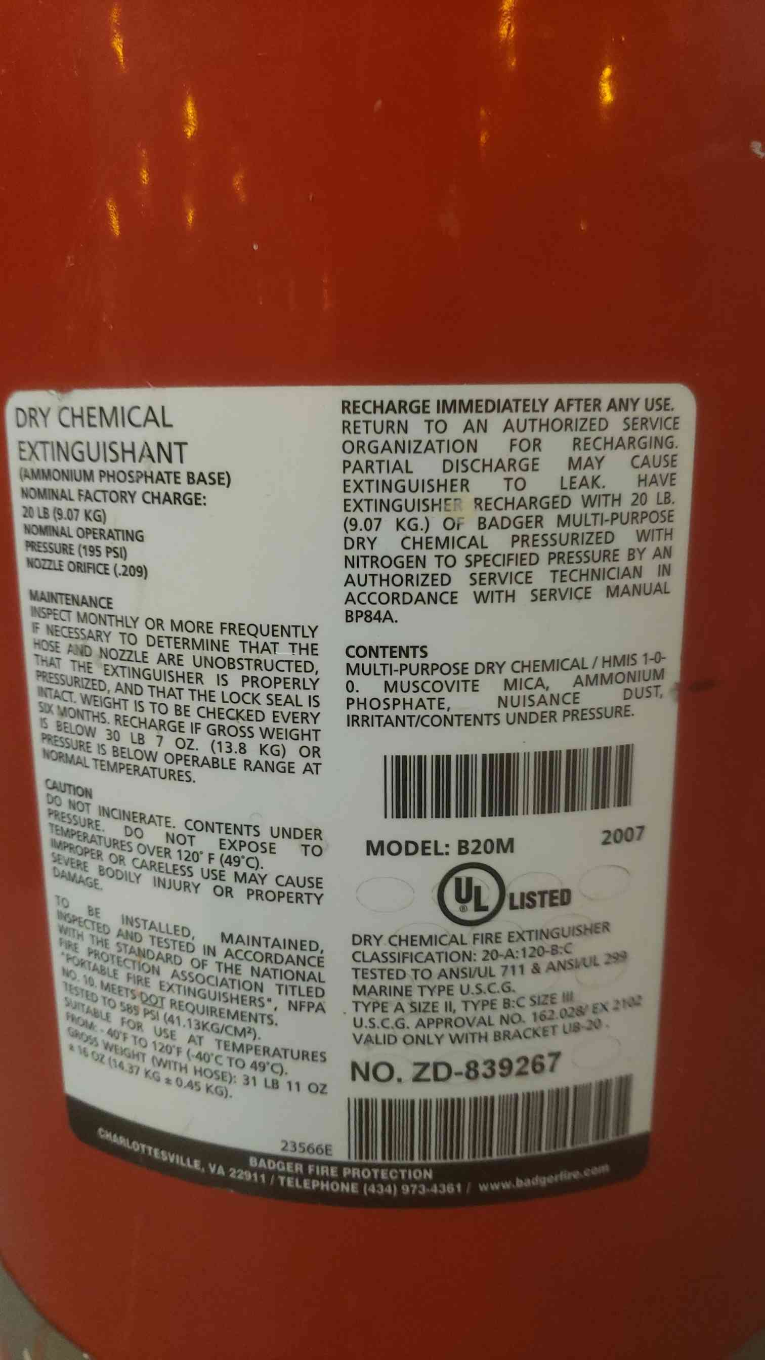 Badger ABC Dry Chemical Fire Extinguisher B20M Out of Inspection (SKU: 109899)
