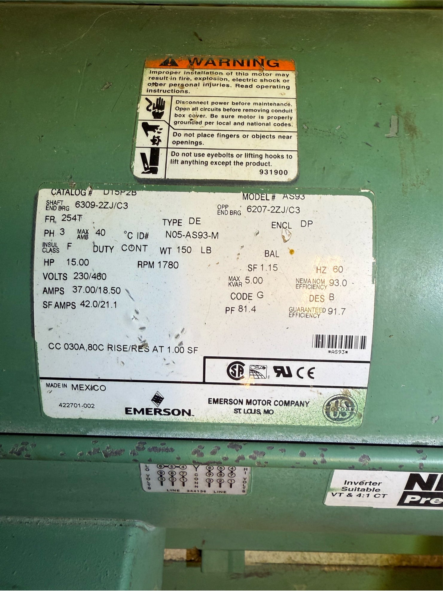 Emerson Model AS93 15HP Motor & Pump 3ph 230/460V (SKU: 110076)
