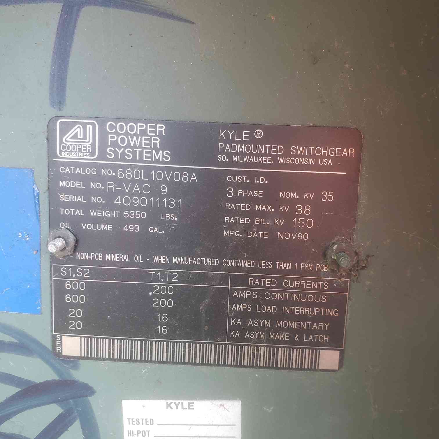 Cooper 35KV Pad-Mount Switch (SKU: 110109)