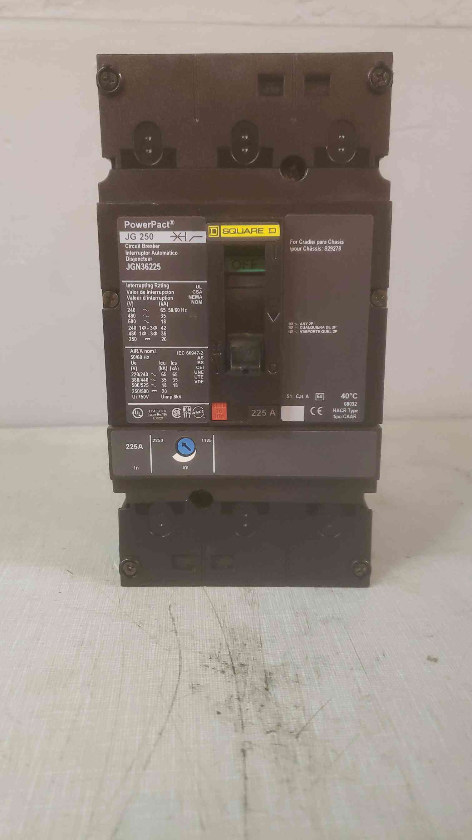 SQUARE D 225A JG 250 CIRCUIT BREAKER JGN36225 PowerPact