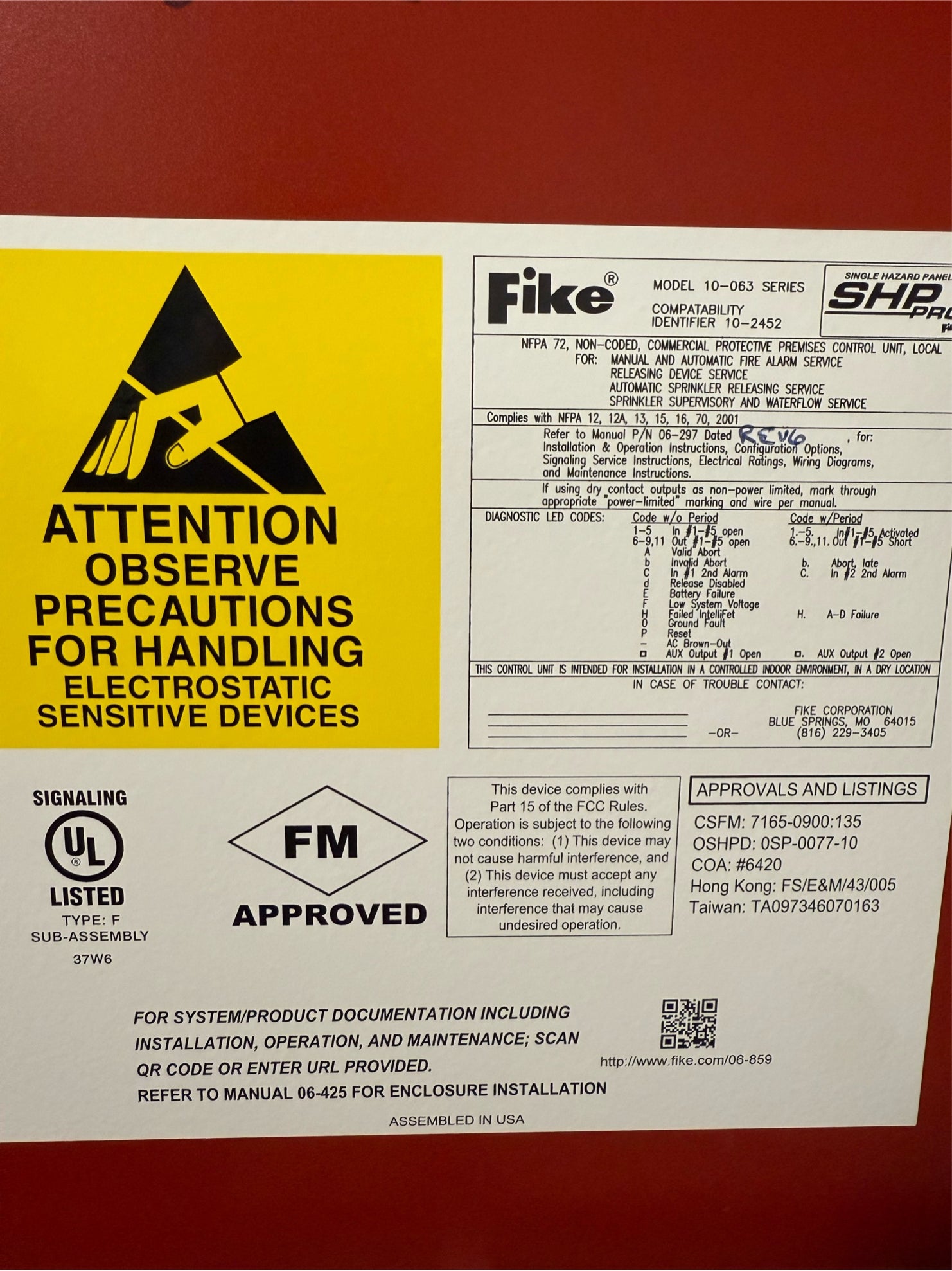 Fike SHP-Pro Single Hazard Fire Suppression Control Panel