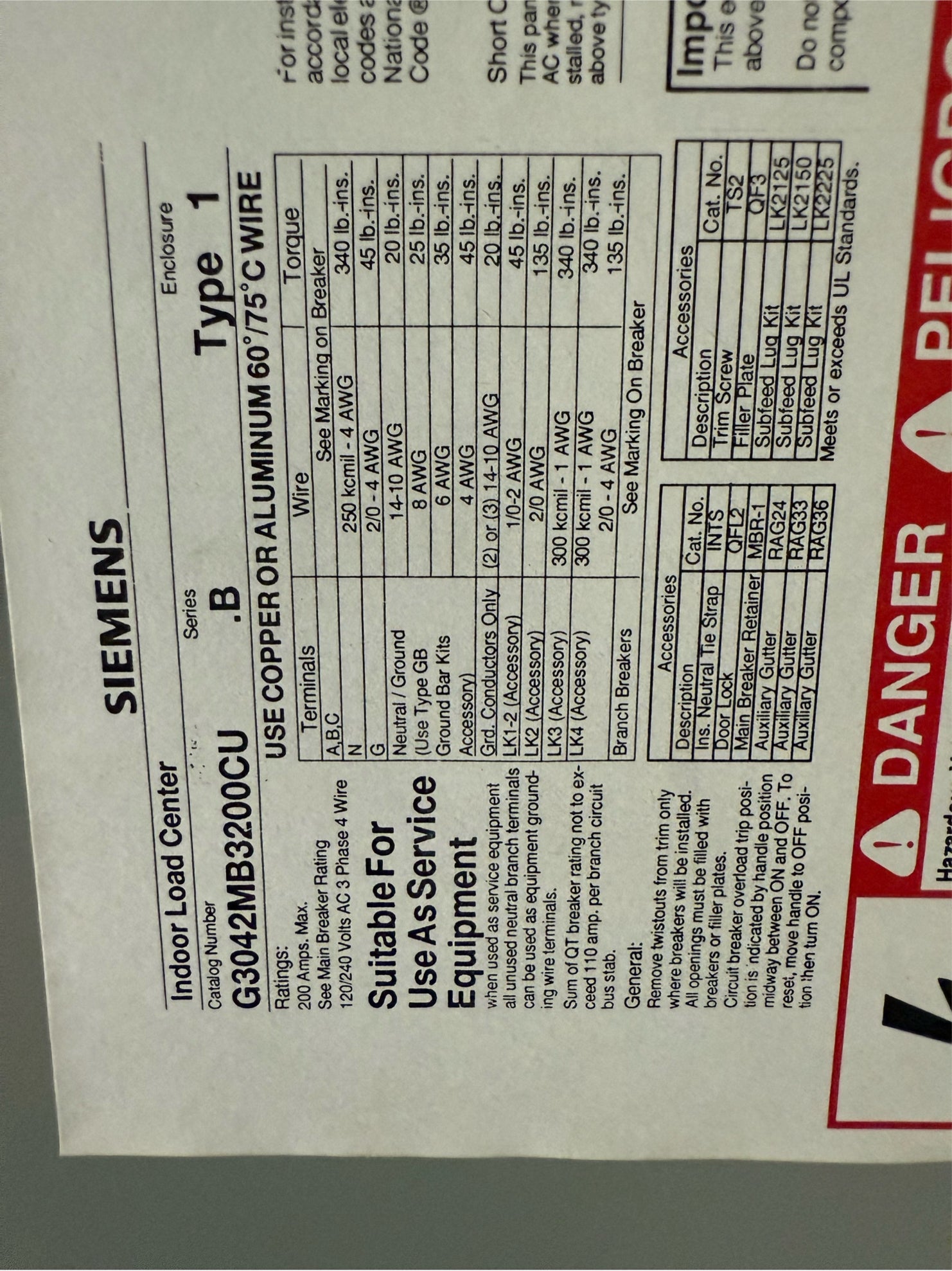 Siemens 200a Panelboard 31 Breakers G3042MB3200CU(SKU: 110472)