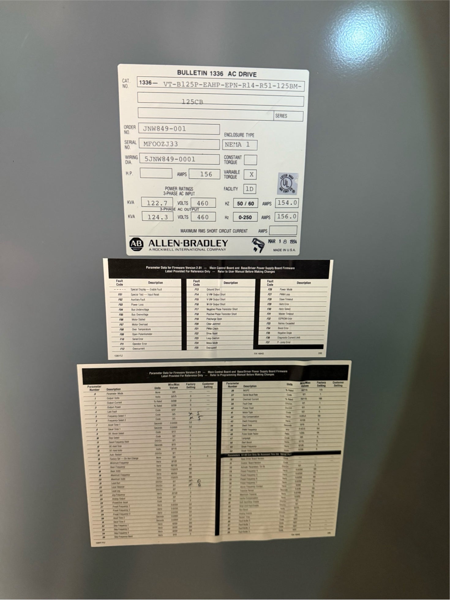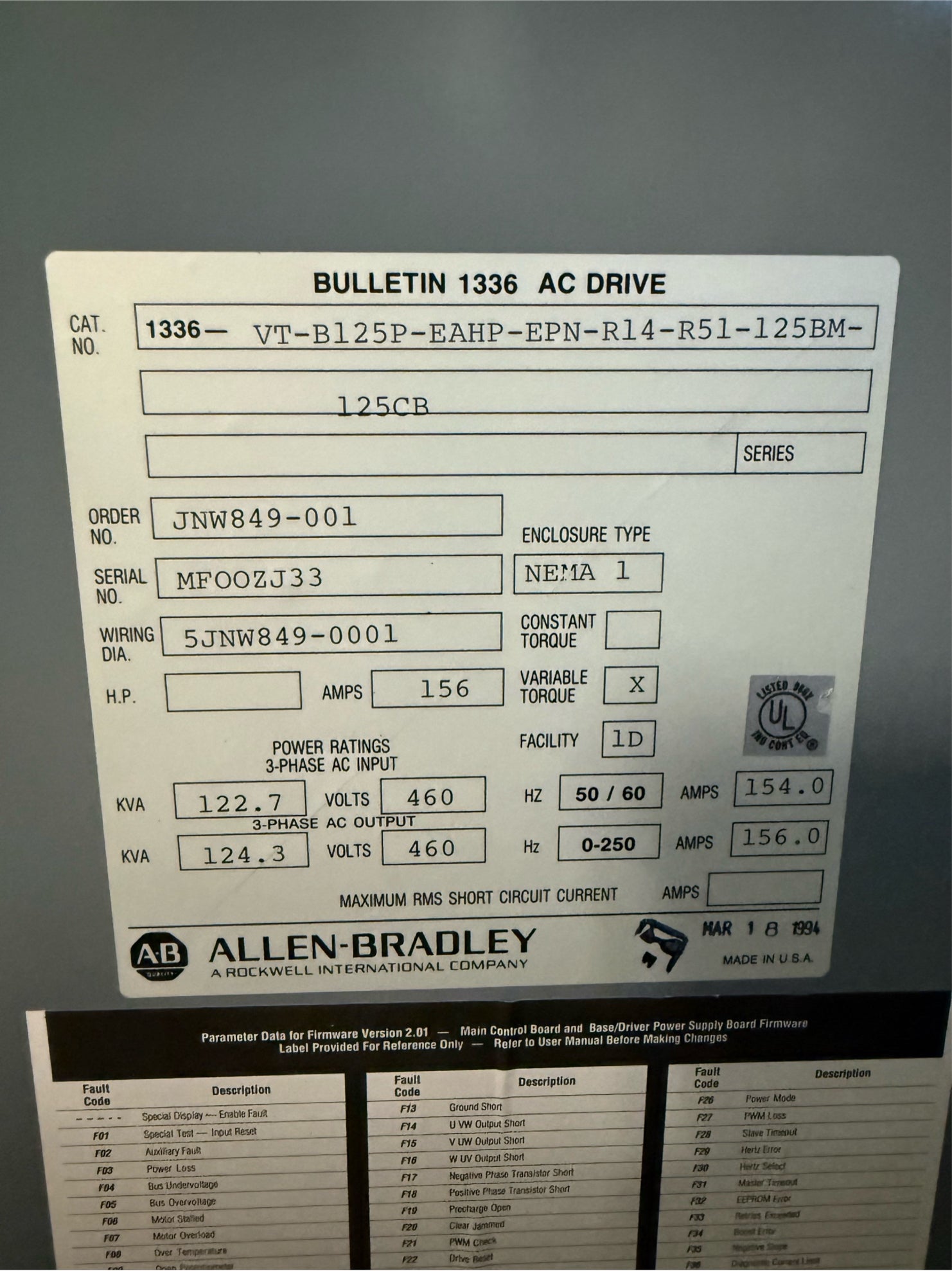 Allen-Bradley Bulletin 1336 AC Drive 156A 460V MCC (SKU: 110513)