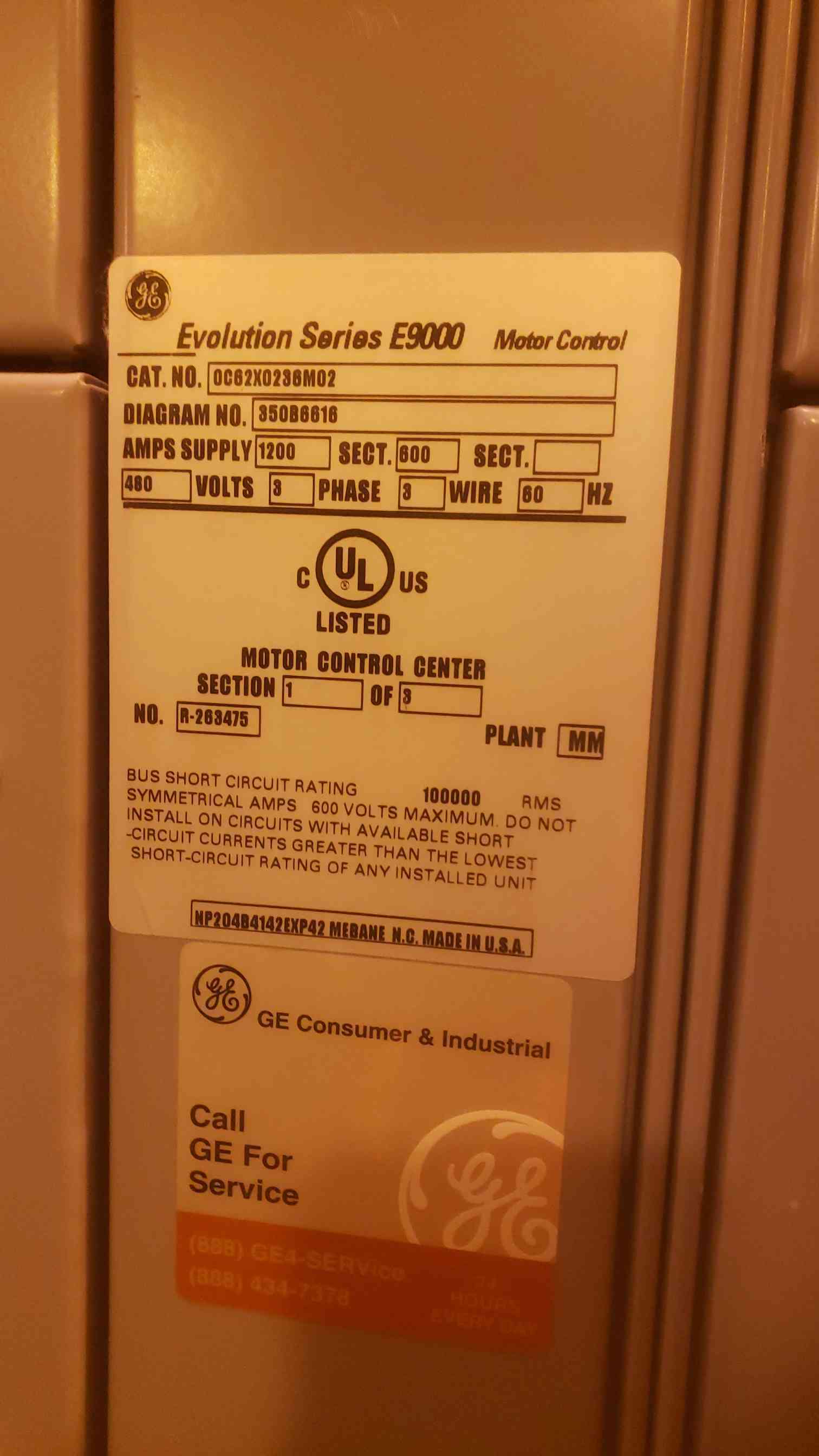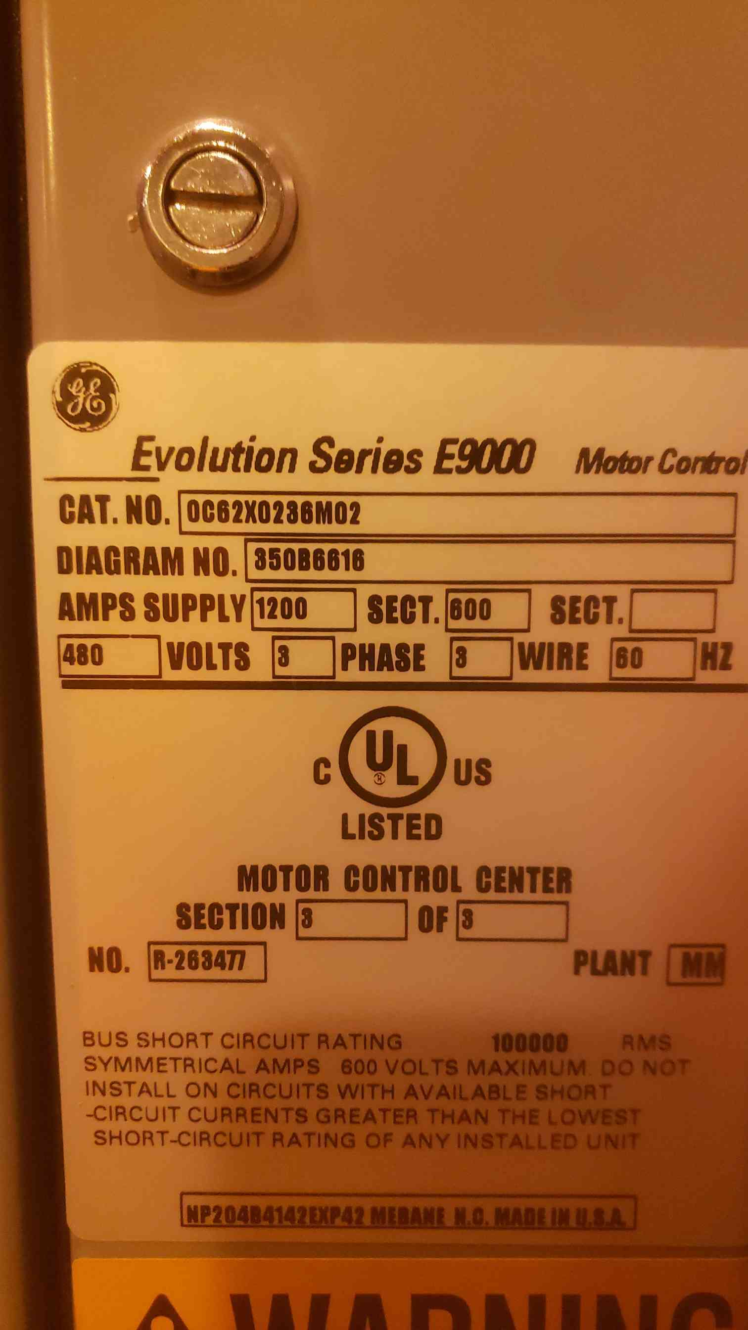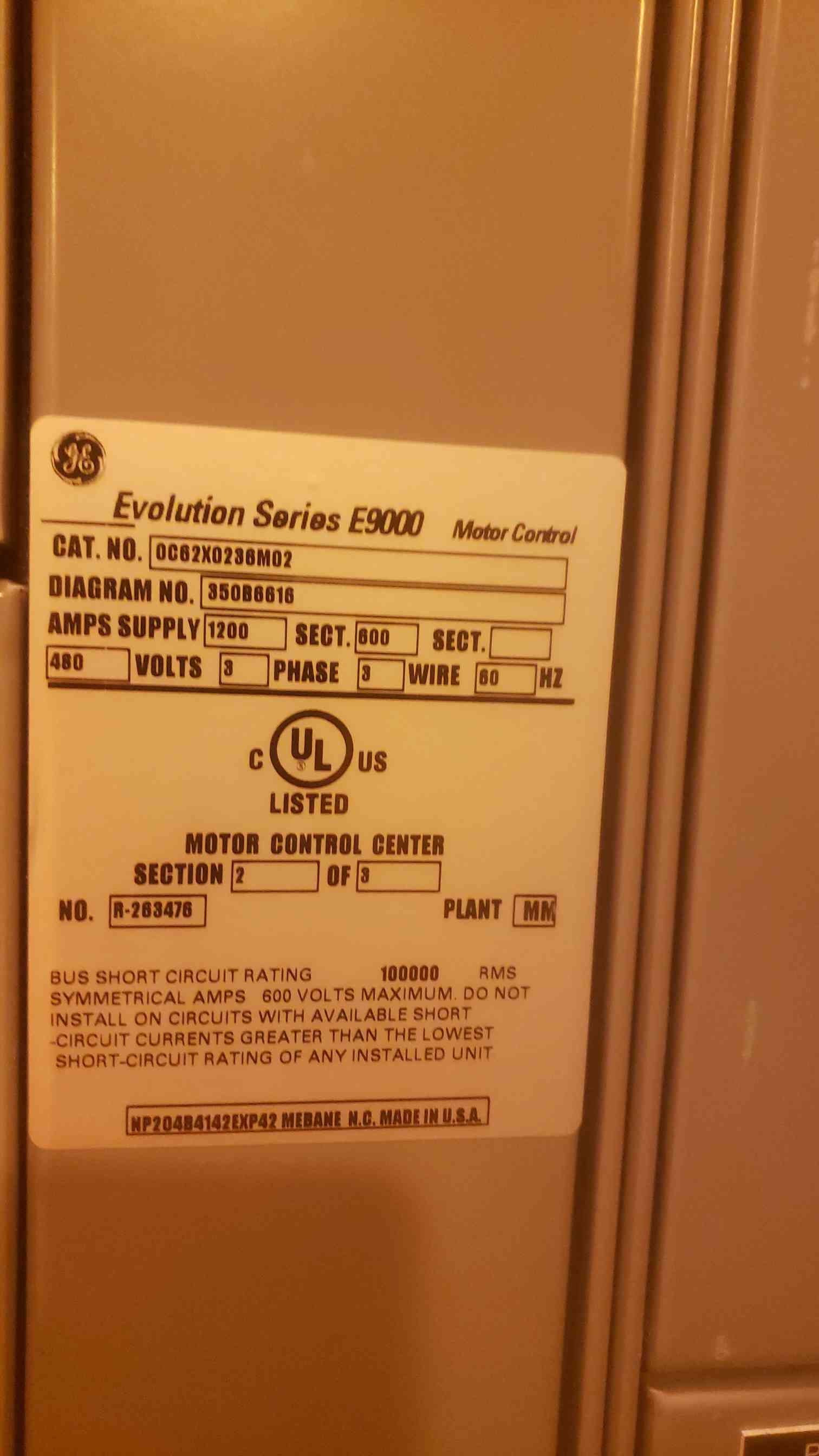 GE Evolution Series E9000 1200A 480V 3PH Motor Control Center OC62X0236M02 (SKU: 110549)