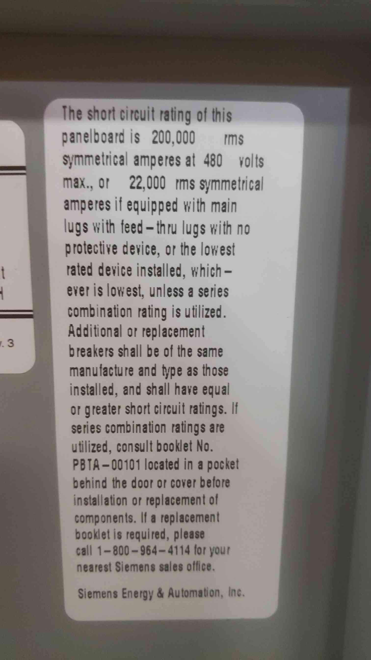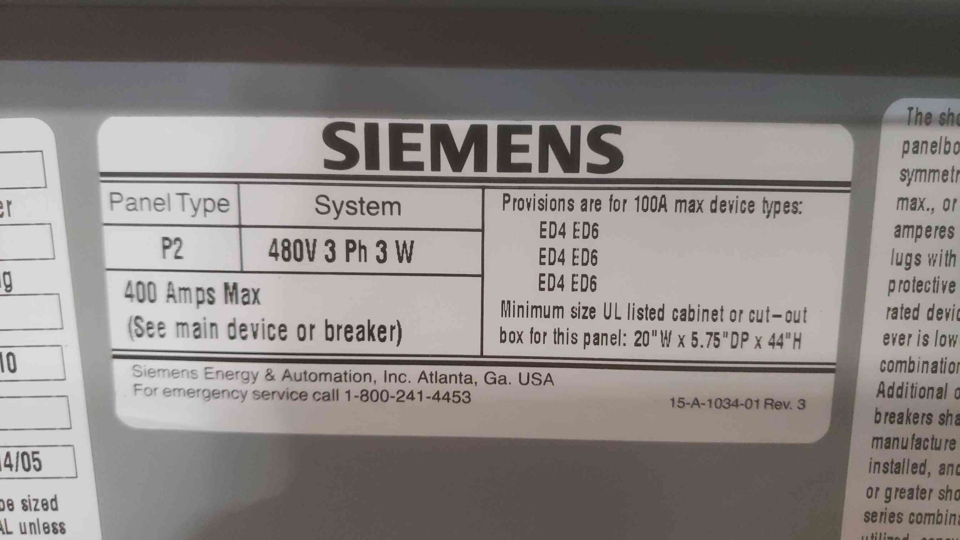 Siemens 400A 480V 3PH 3W P2F30ML400FTS Breaker Panelboard(SKU: 110554)