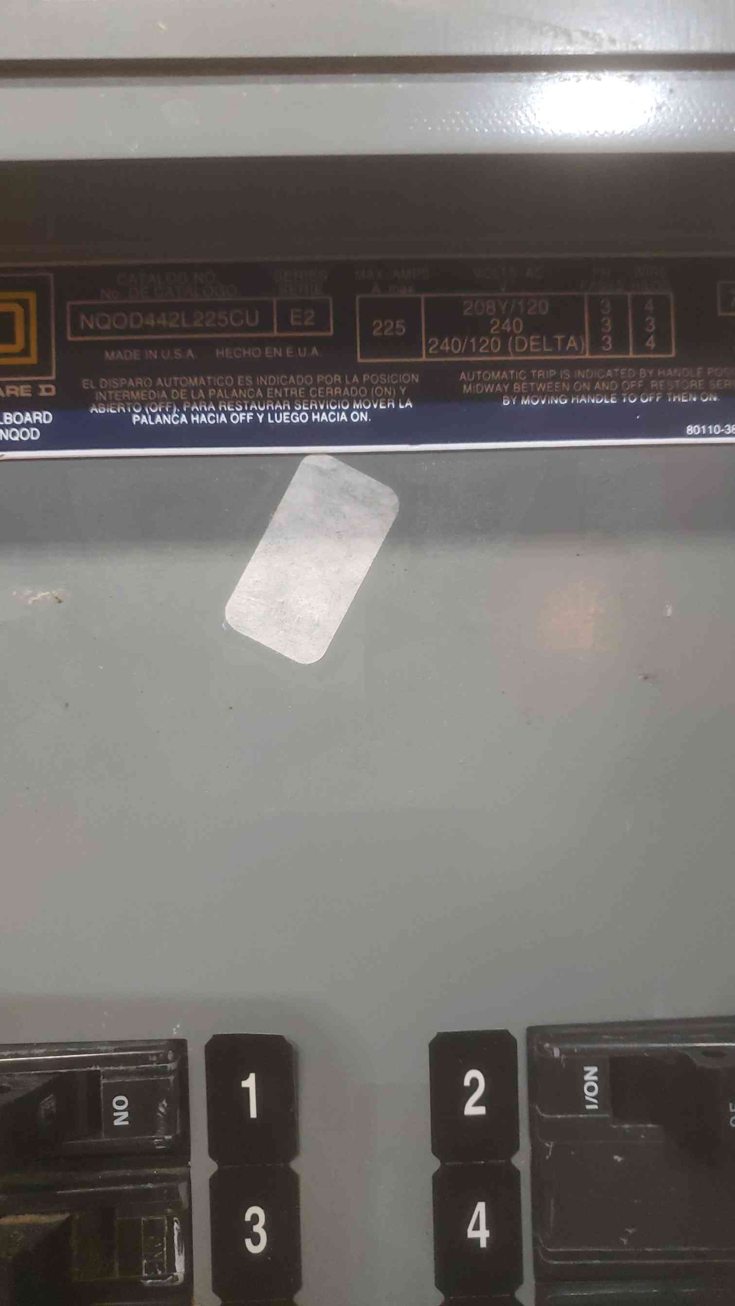 SQUARE D 120/240V 225A Panelboard CAT NO. NQOD44L225CU(SKU: 110588)