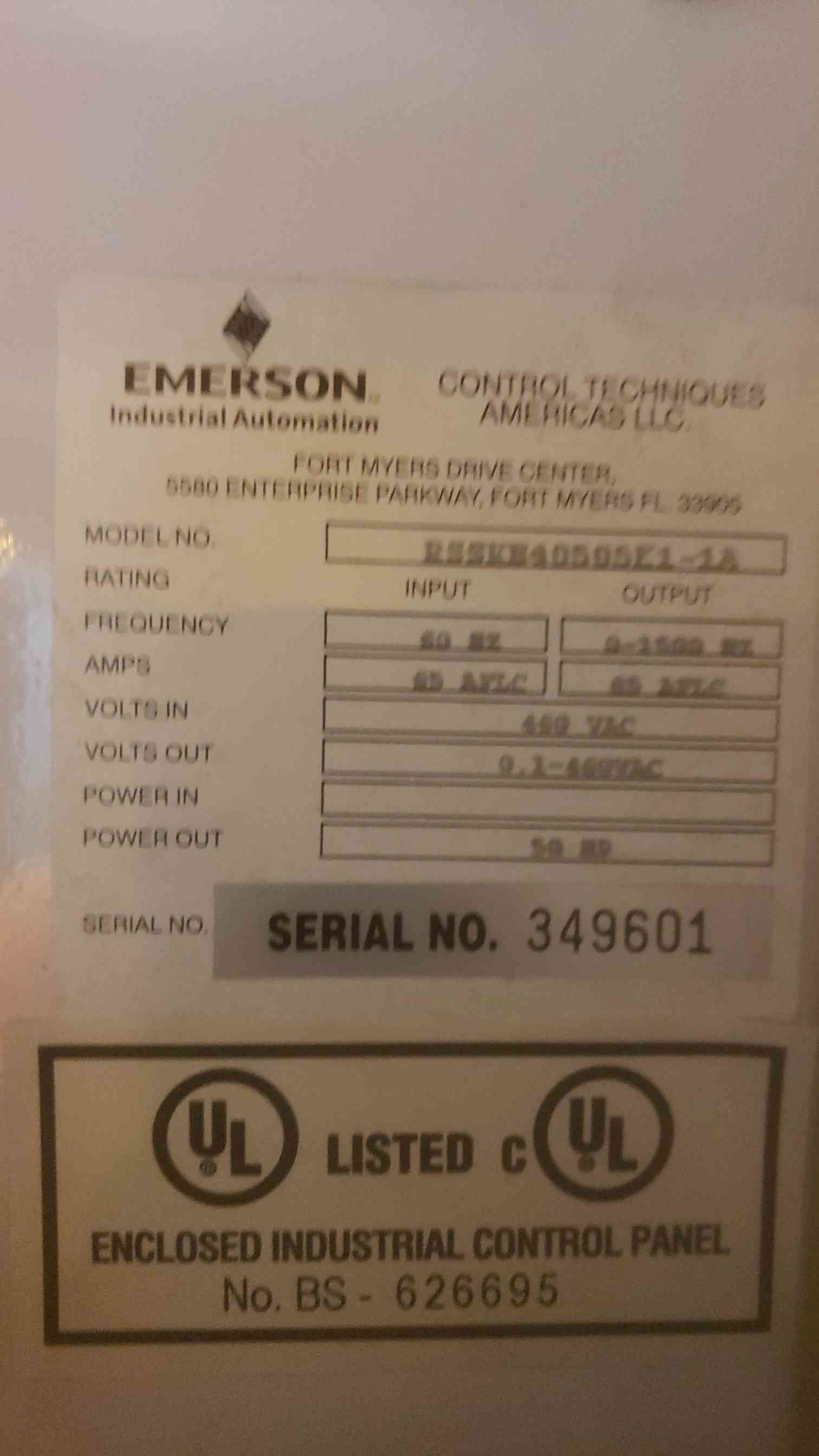 Emerson 460V Industrial Automation Enclosure RSSKN40505E1-1A VFD