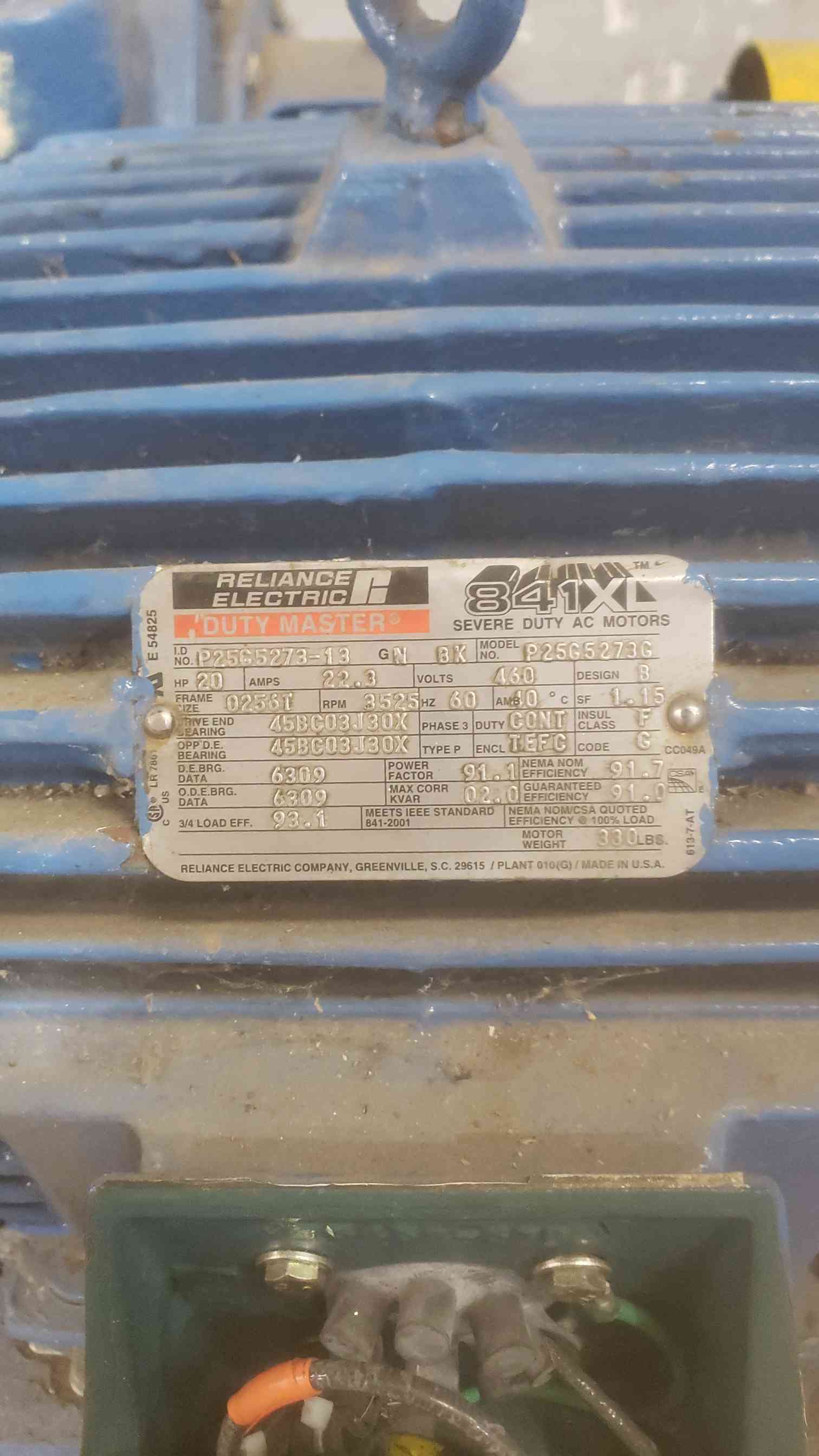 20HP RELIANCE ELECTRIC 841XL 460V, 22.3A, 3PH Severe Duty AC Motor and Paco Pump