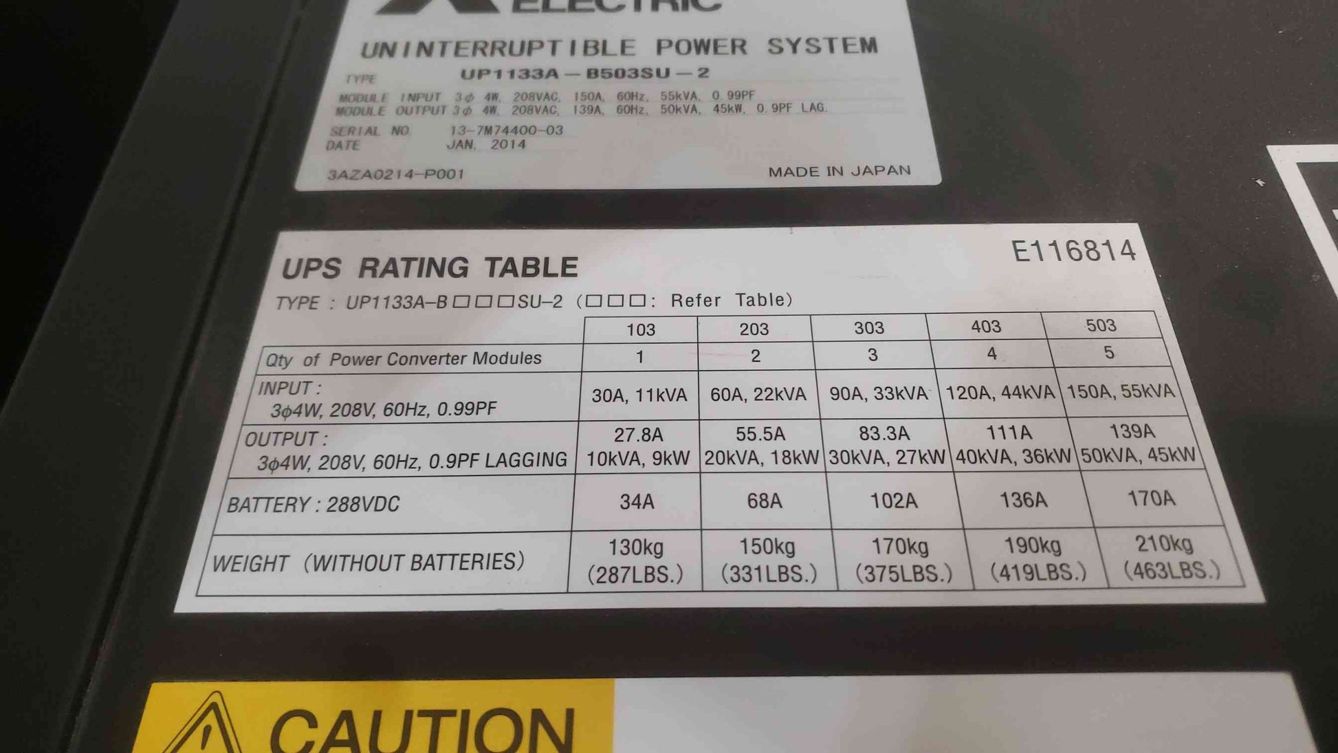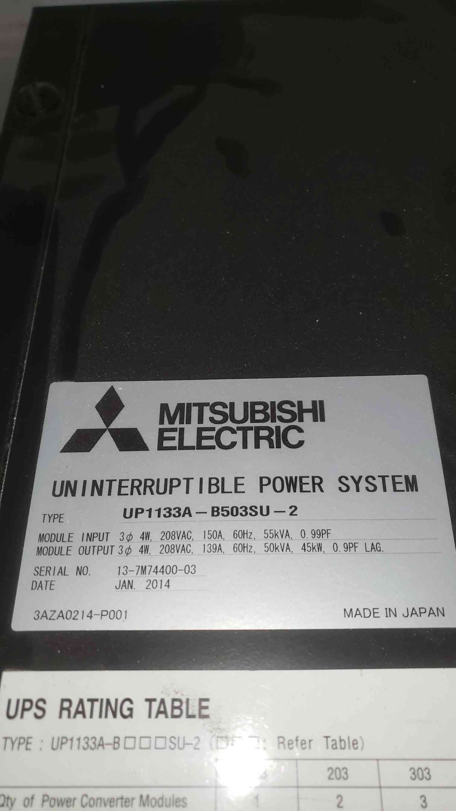 UP1133A 50KVA UPS W/ Battery Cabinet Diamond Series Mitsubishi (SKU: 110890)