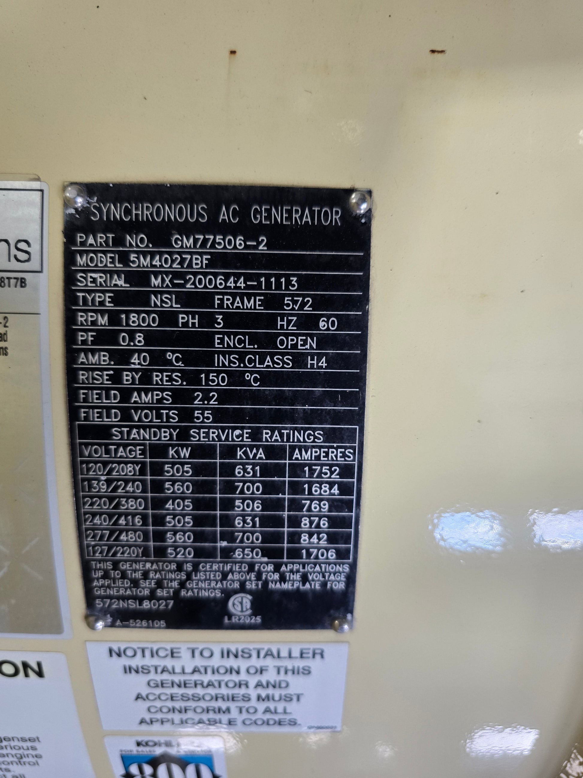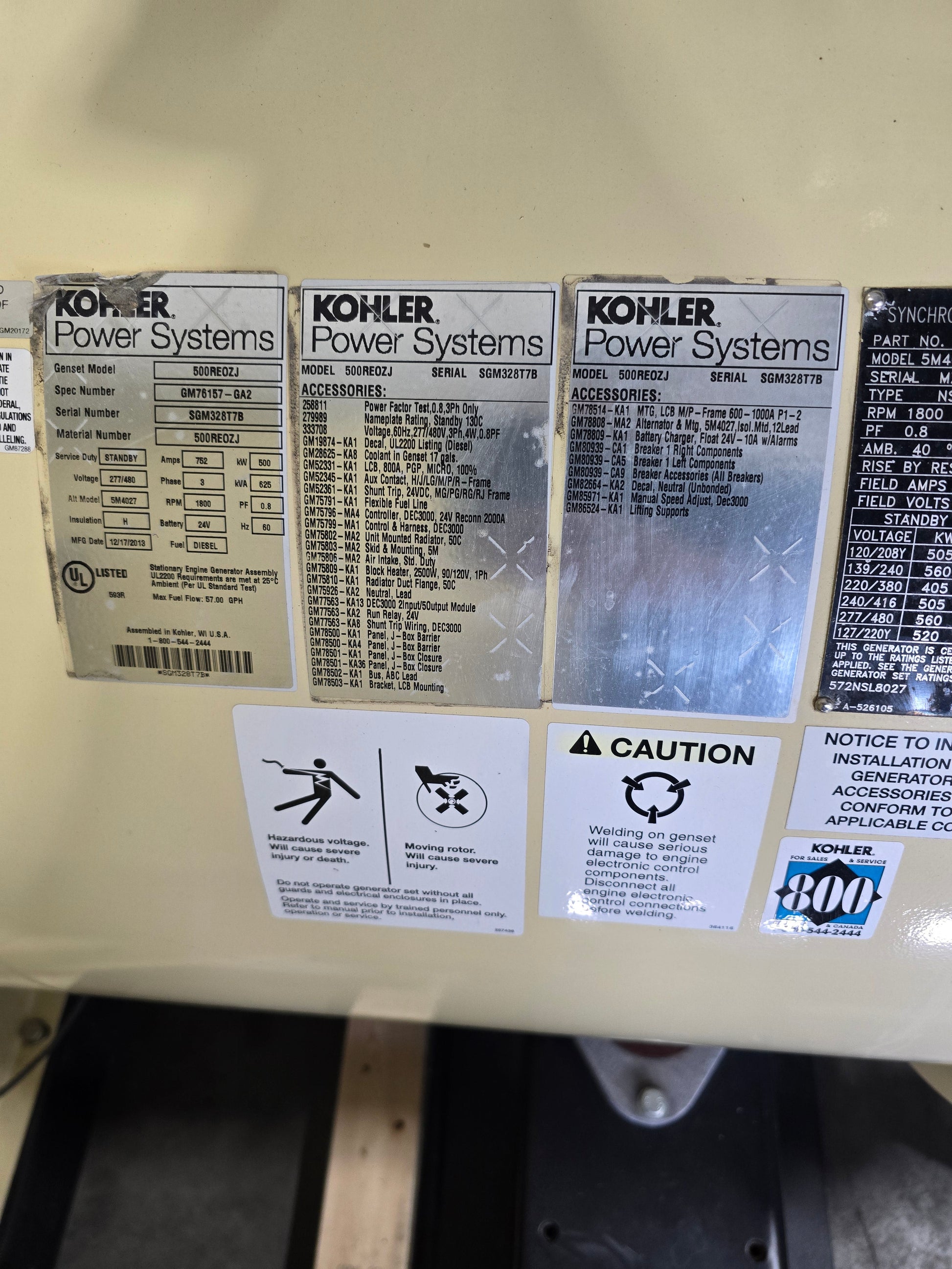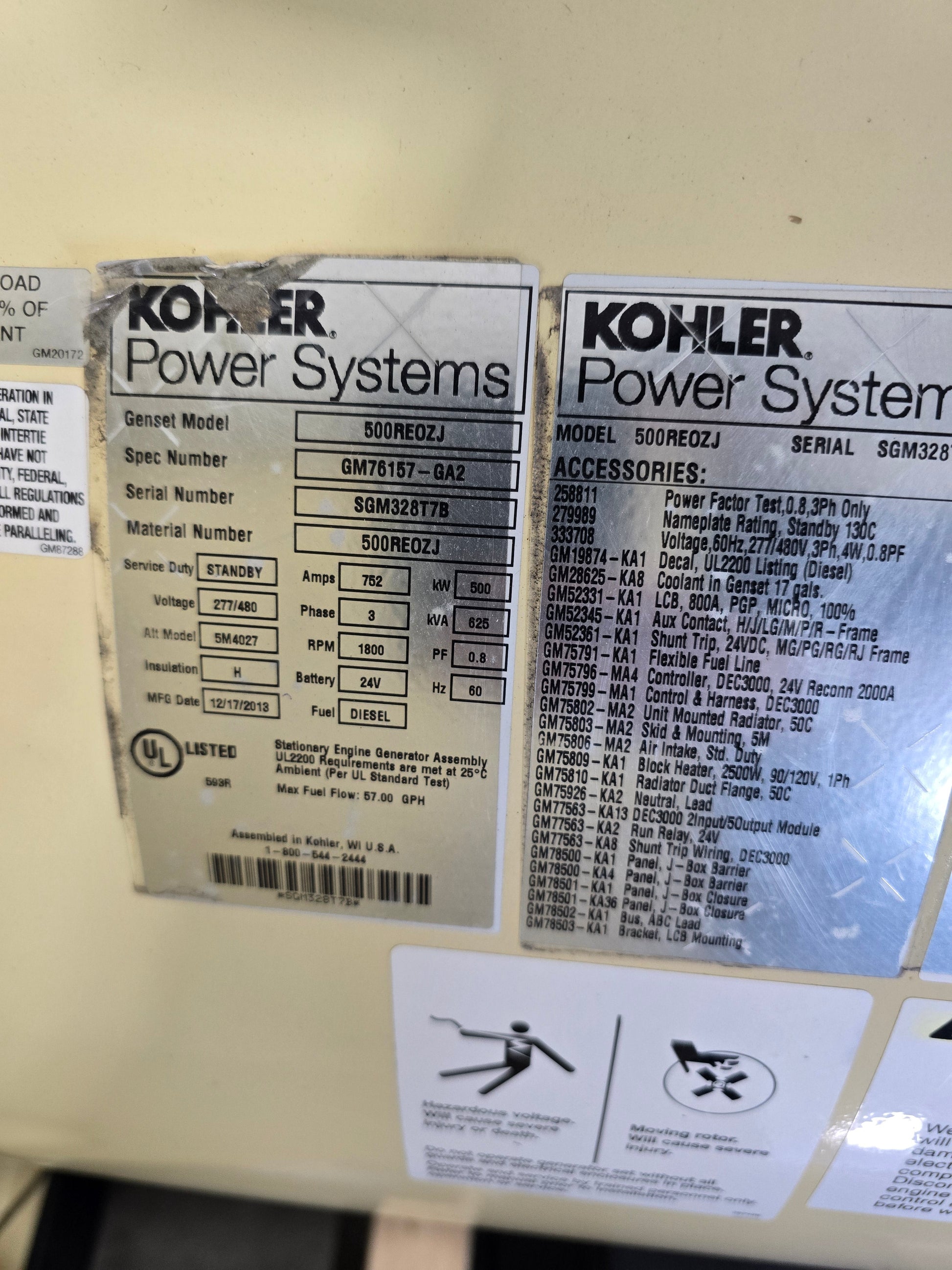 500KW Kohler 500REOZJ John Deere 6135 Diesel Generator Open 2013 136hrs TESTED