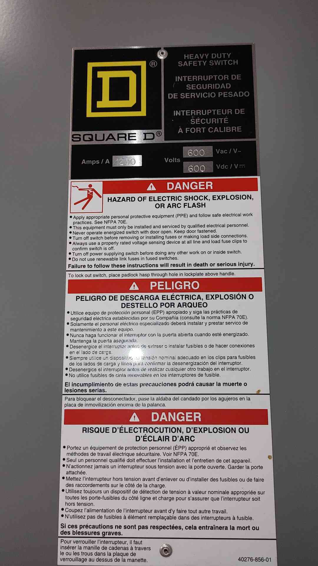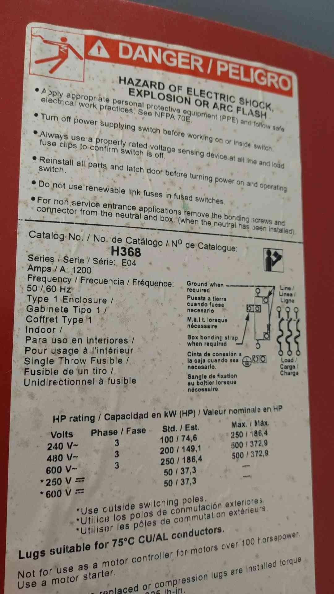 Square D 1200A 600VAC/VDC Heavy Duty Safety Switch w/ Fuses H368 NEW Surplus See Notes (SKU: 110961)