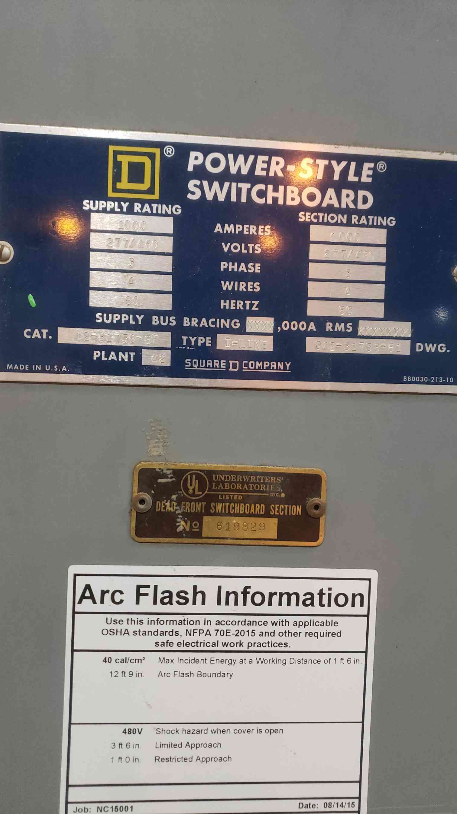 SQUARE D 1000A 277/480V Power-Style Breaker Switchboard Missing Side Covers 1 Main & 3 Dist Breakers (SKU: 111254)