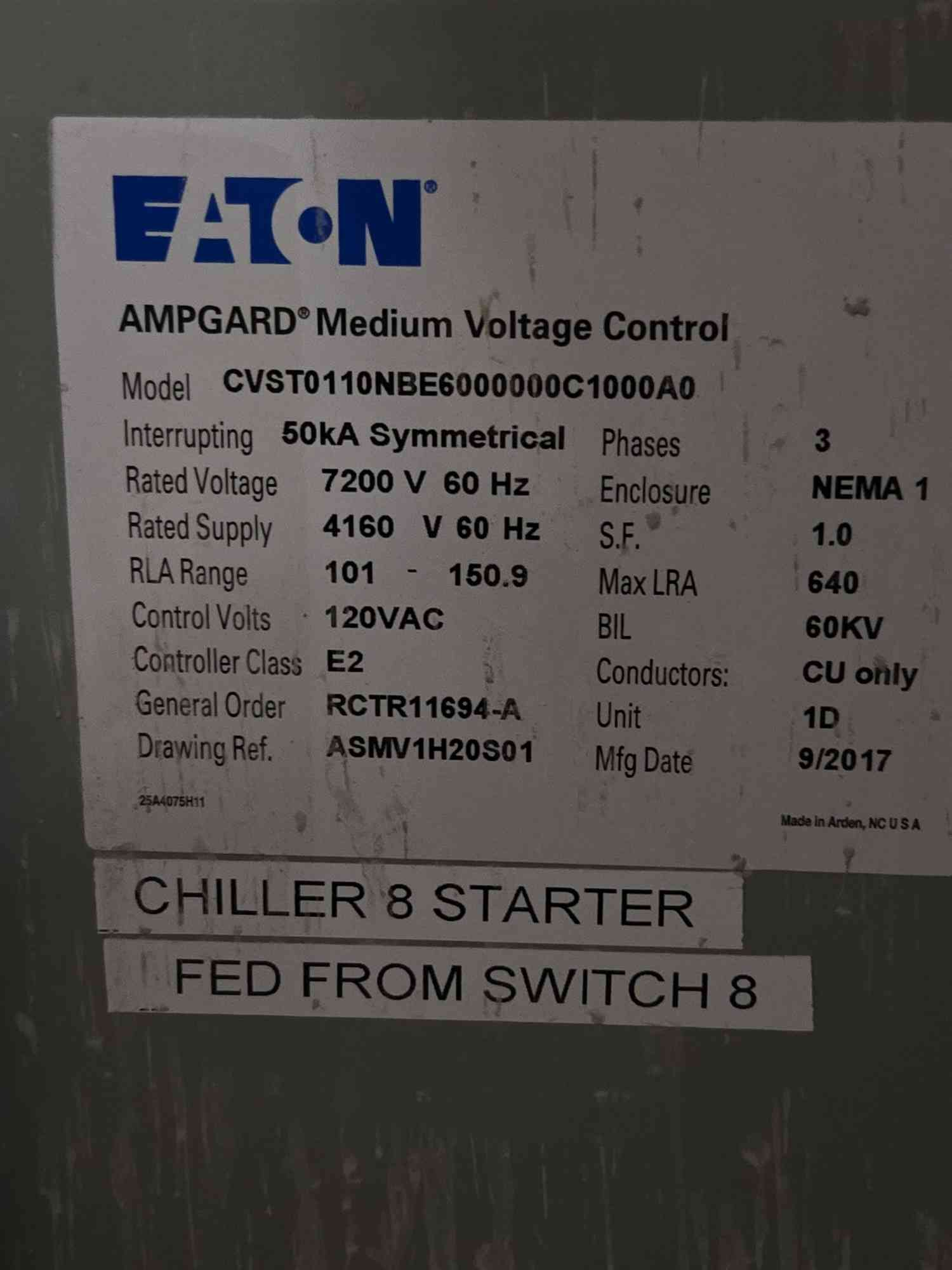 50KA Symmetrical Eaton AmpGard Medium Voltage Motor Control 7200/4160V CVST