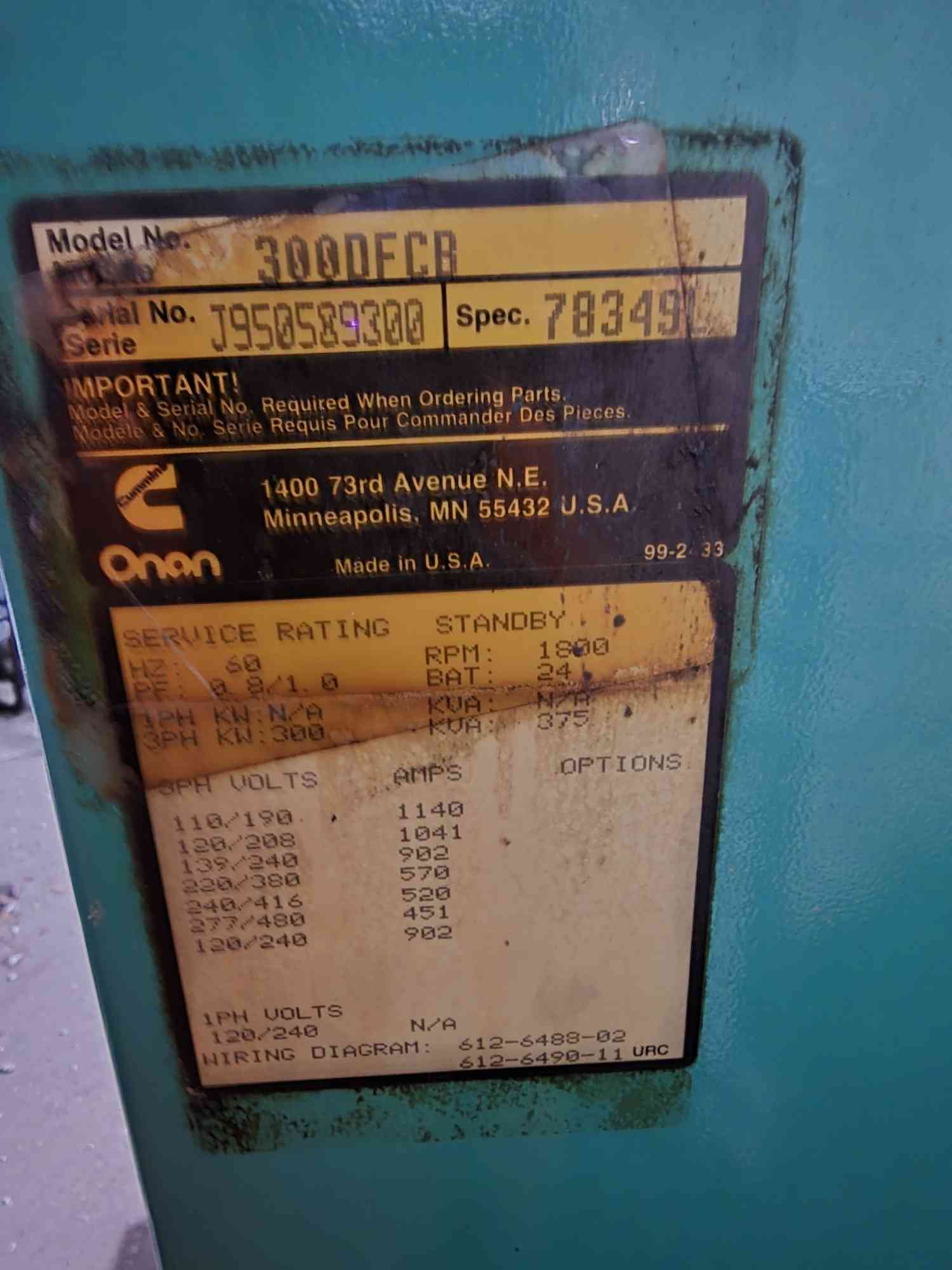 300KW Cummins NTA-855-G2 Diesel Generator 3PH 86hrs