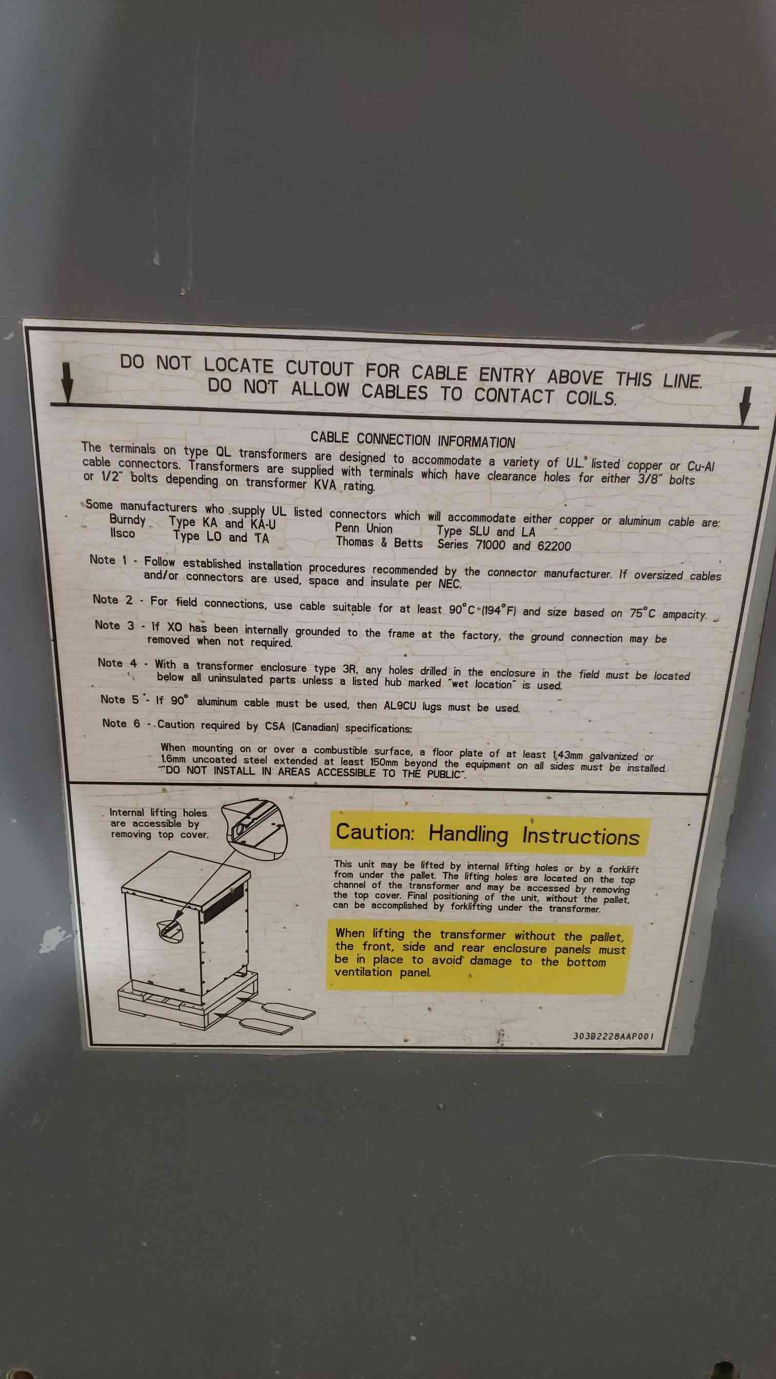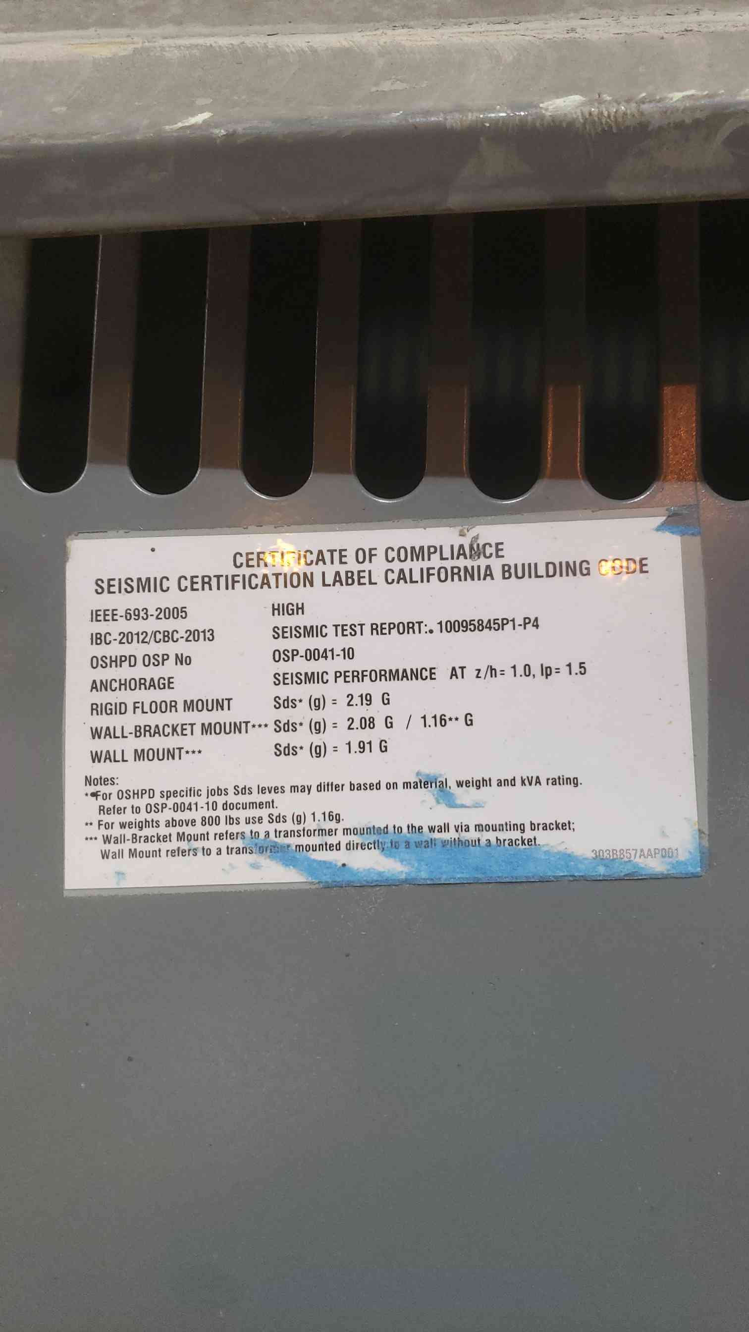 GE 150KVA 3PH 480v x 208/120v Transformer 9T10W1006 (SKU: 111372)