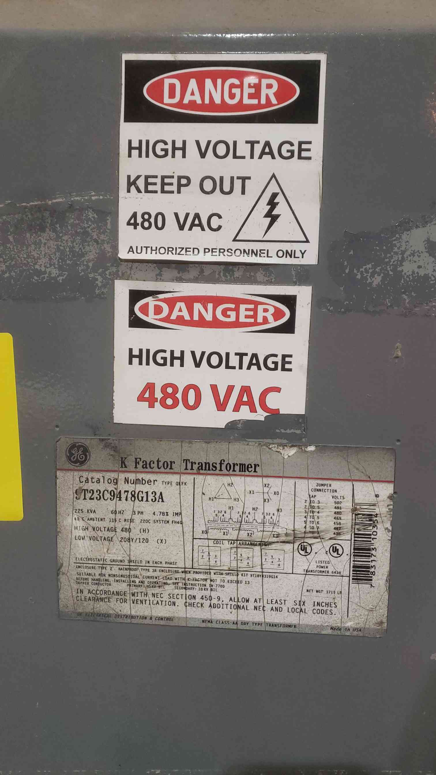 GE 225KVA 3PH 480v x 208/120v Dry Transformer 9T23C9478G13A (SKU: 111374)