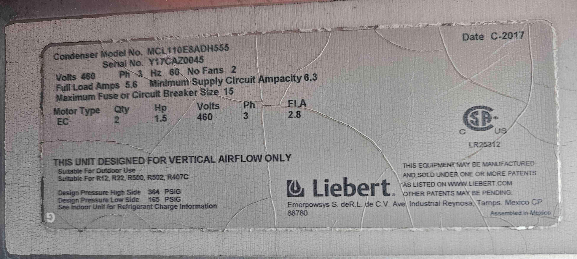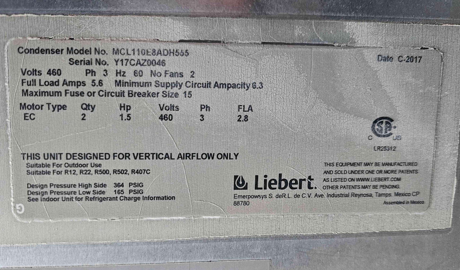 Liebert 460V 3PH 2 Fan Condenser MCL110E8ADH555 Vertiv Mirco Channel (SKU: 111377)