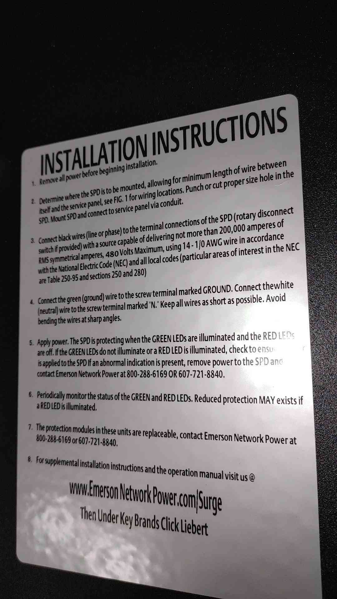 Liebert 480/277V 3PH SI Surge Protection Panel S1032277XANCE (SKU: 111378)