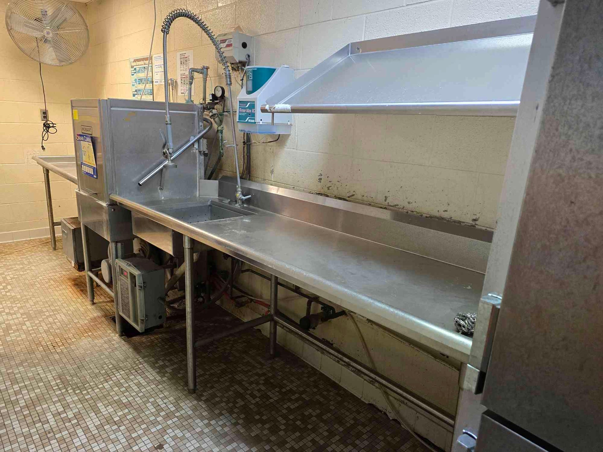 Hobart Three Part Dishwashing Unit 14' L X 2.5' D Washer Prep & Table
