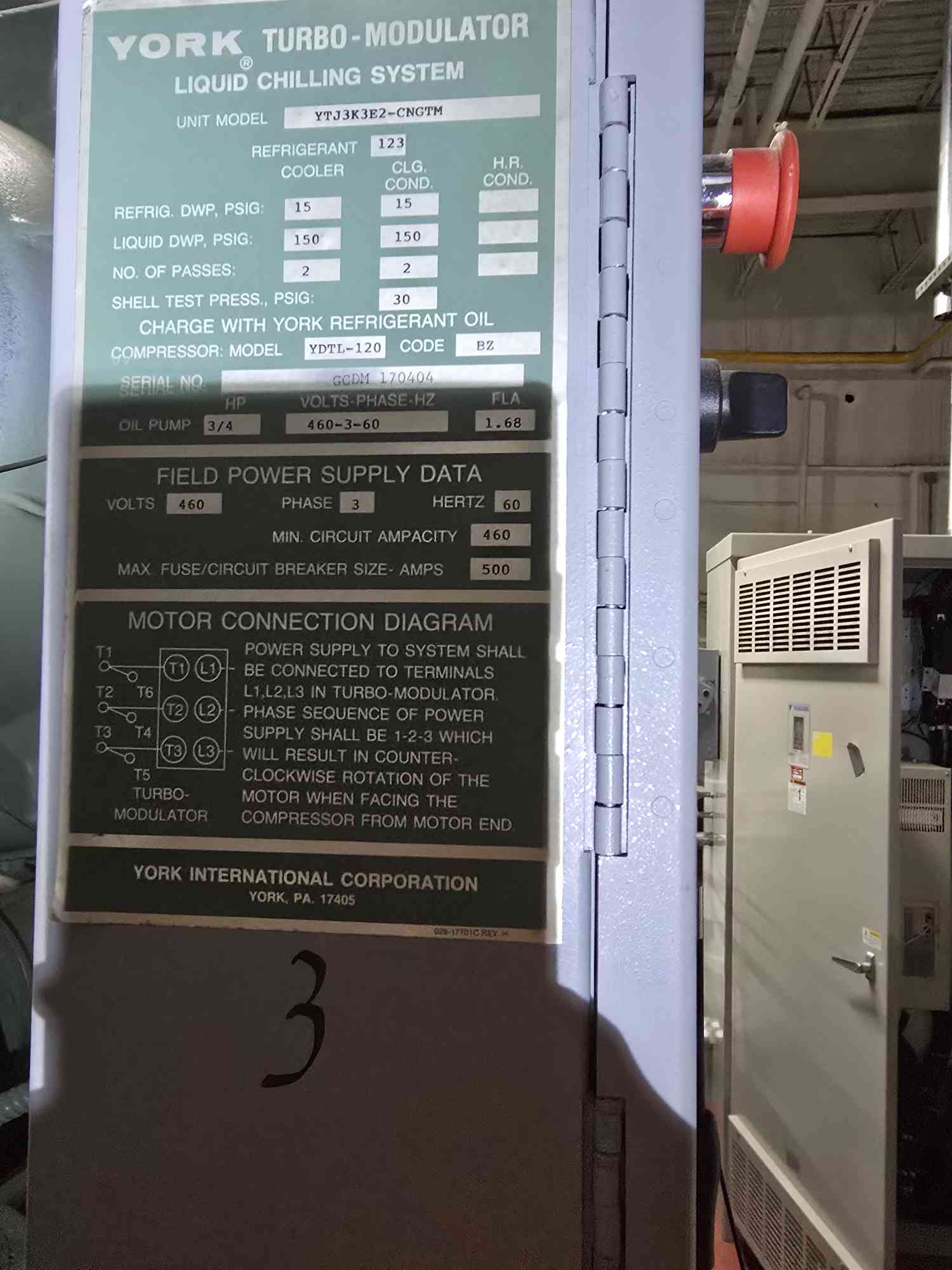 500 Ton York Turbo Modulator Liquid Chiller YTJ3K3E2-CNGTM