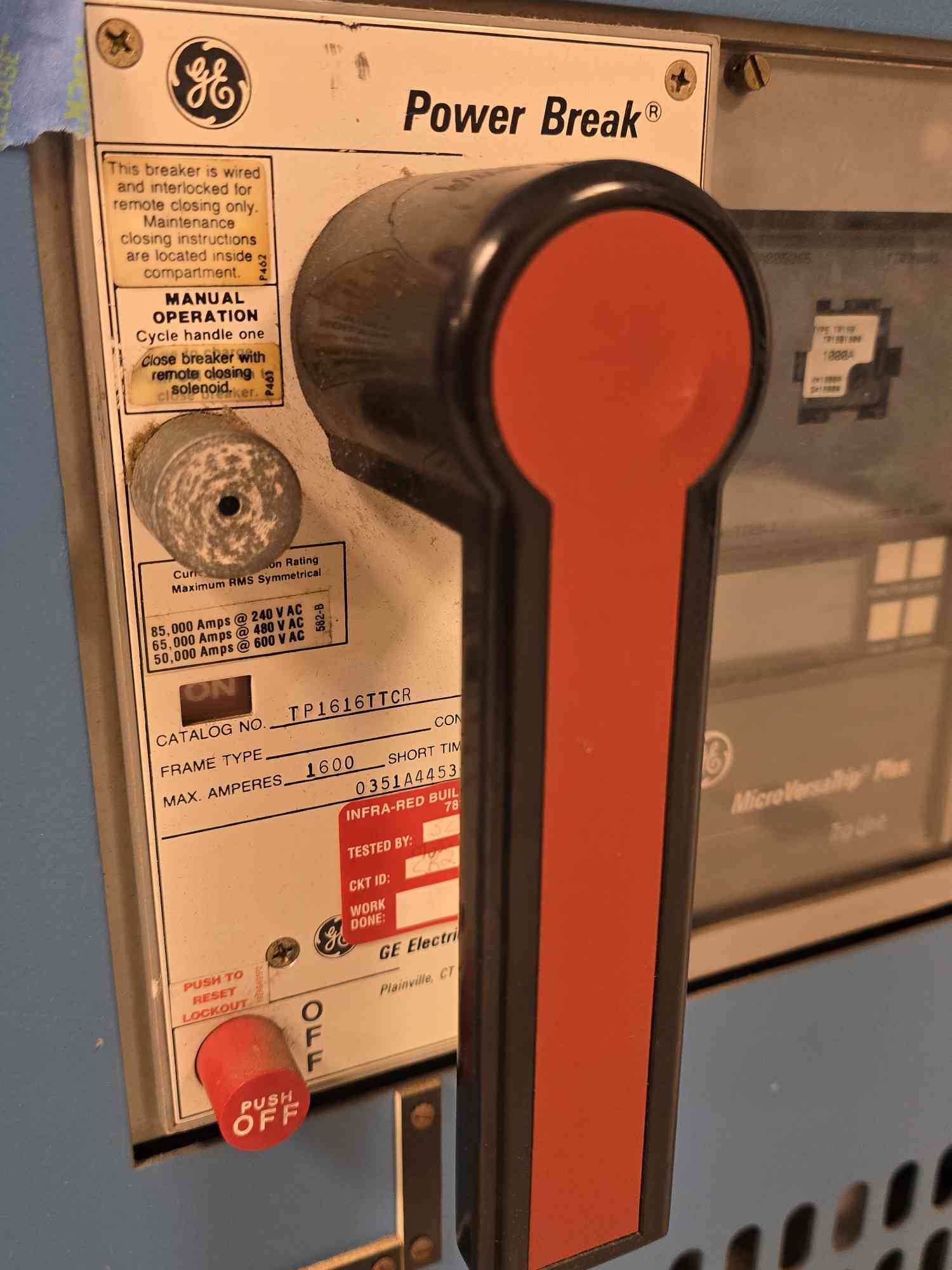 1600A GE PowerBreak Switchboard 480/277V 3PH 4 Wire 2 Breaker TP1616TTCR