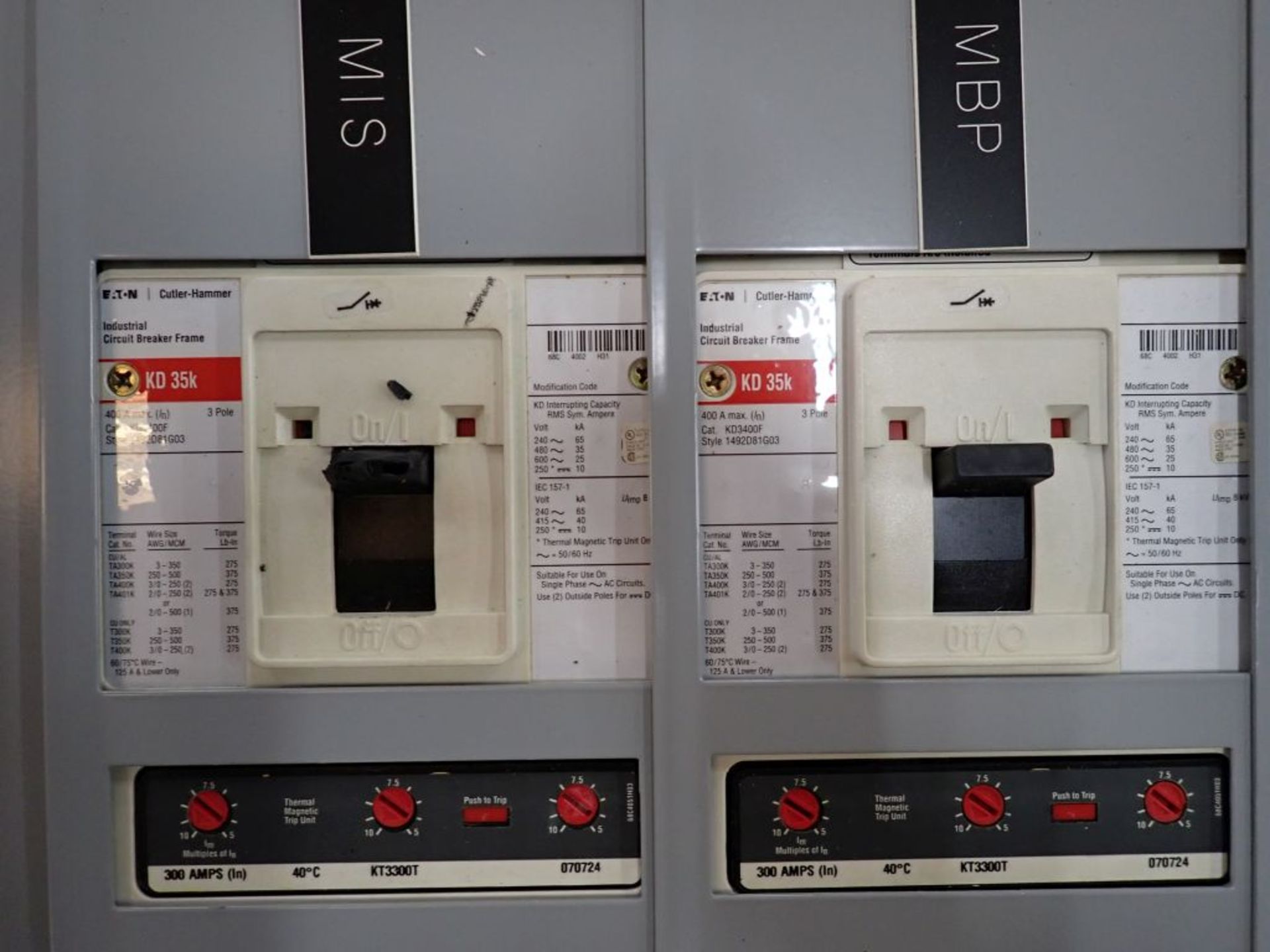 (1) Panelboard, Cat No. BX2457, 400A, 480Y/277V, 3PH, w/(2) 400A Circuit Breakers