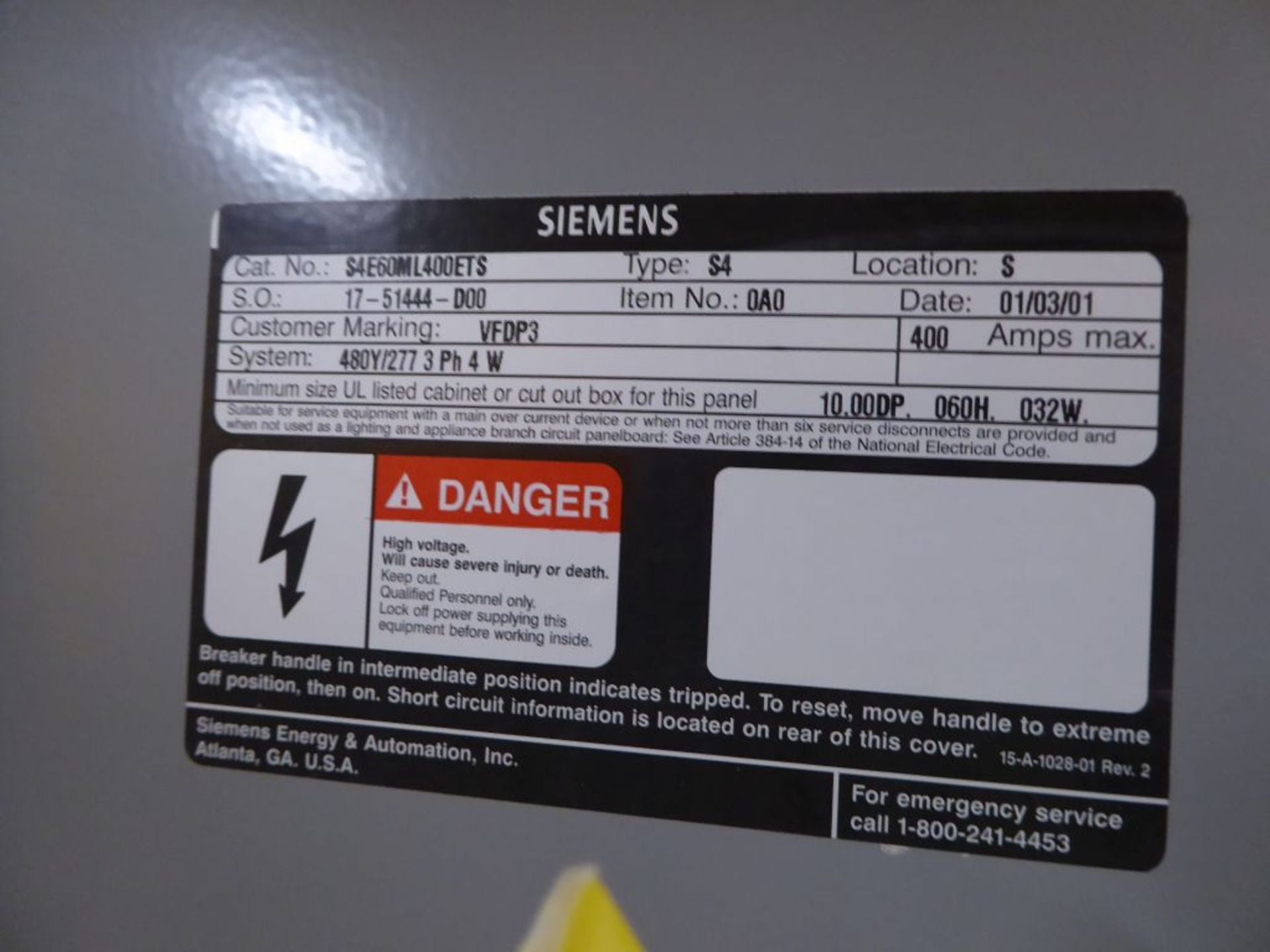 Siemens S4 400A Panelboard with 13 Circuit Breakers 480Y/277V, 3PH